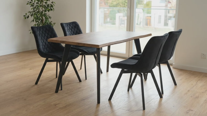 Zestaw: Stół Rozkładany Vega + 4 Krzesła Welurowe Draco (Czarne)
