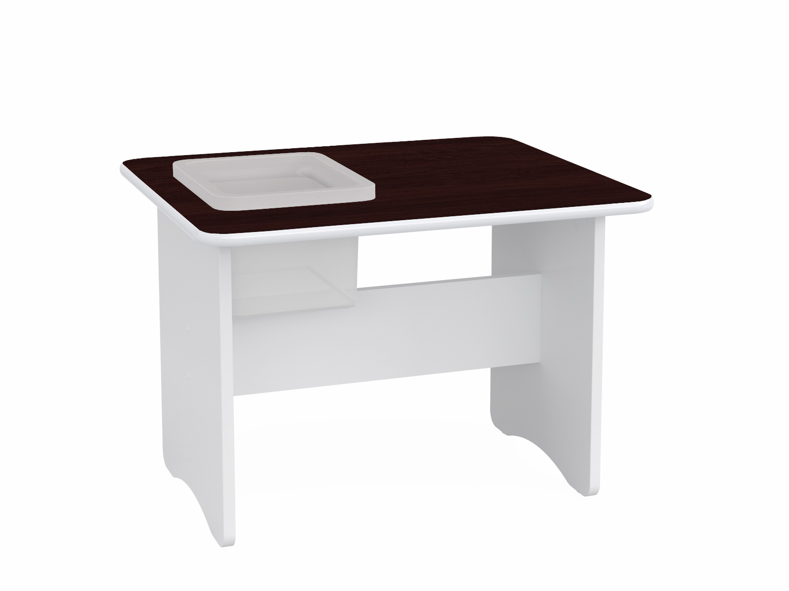 Cena obejmuje: stolik w kolorze biało-wenge oraz plastikowy pojemnik.