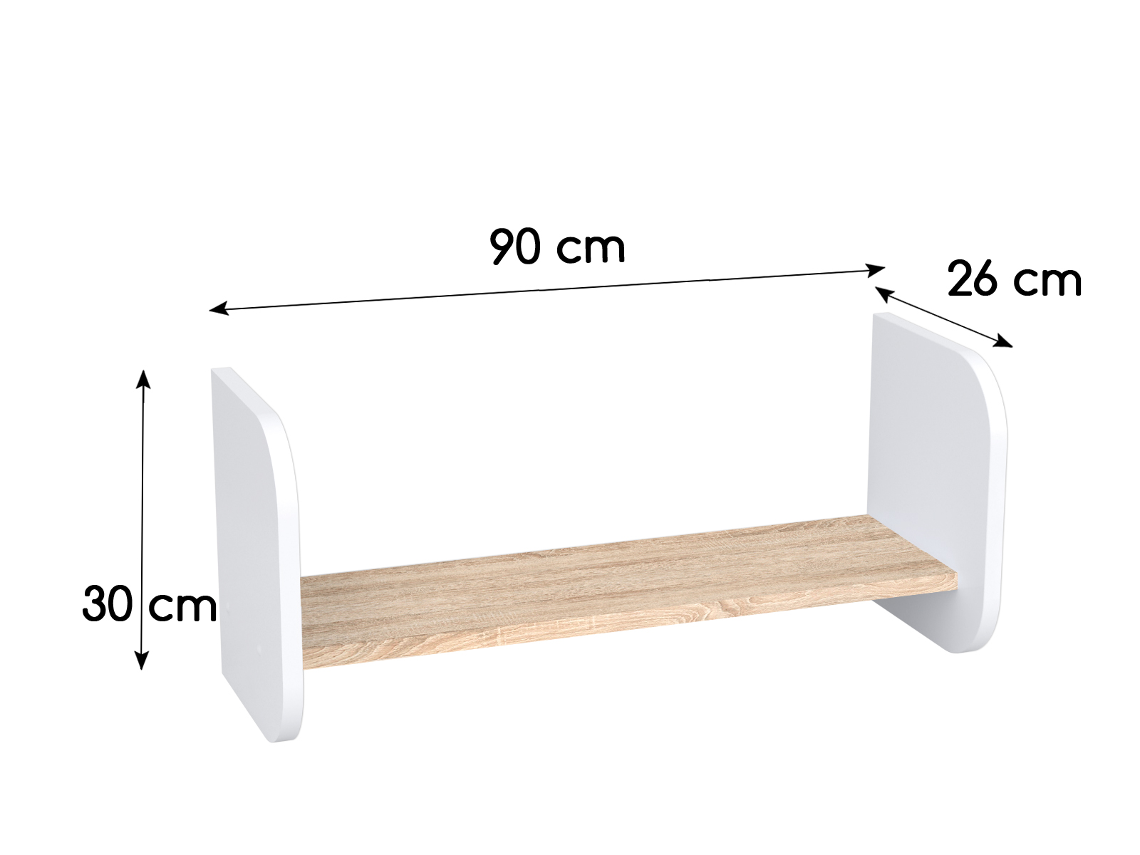 Pojedyncza półka wisząca o szerokości 90 cm to praktyczny dodatek do każdego wnętrza. Dzięki prostemu systemowi montażu łatwo ją zawiesić i skutecznie ozdobi pustą ścianę, na przykład nad łóżkiem.