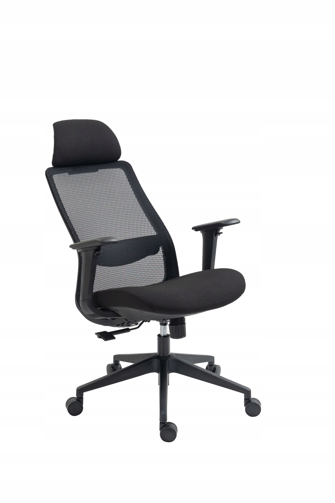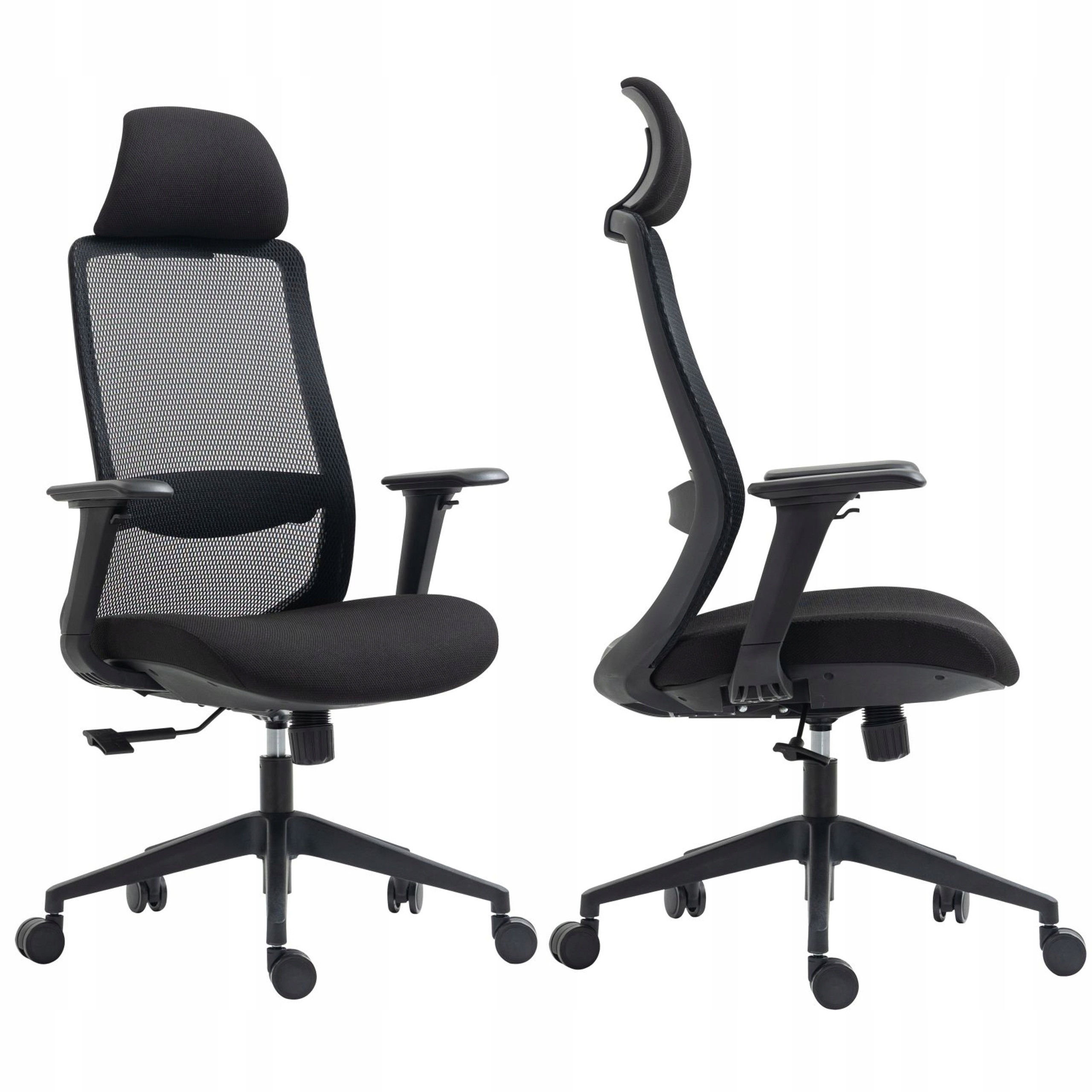 Fotel Obrotowy Ergonomiczny Z Zagłówkiem Czarny Do Gabinetu