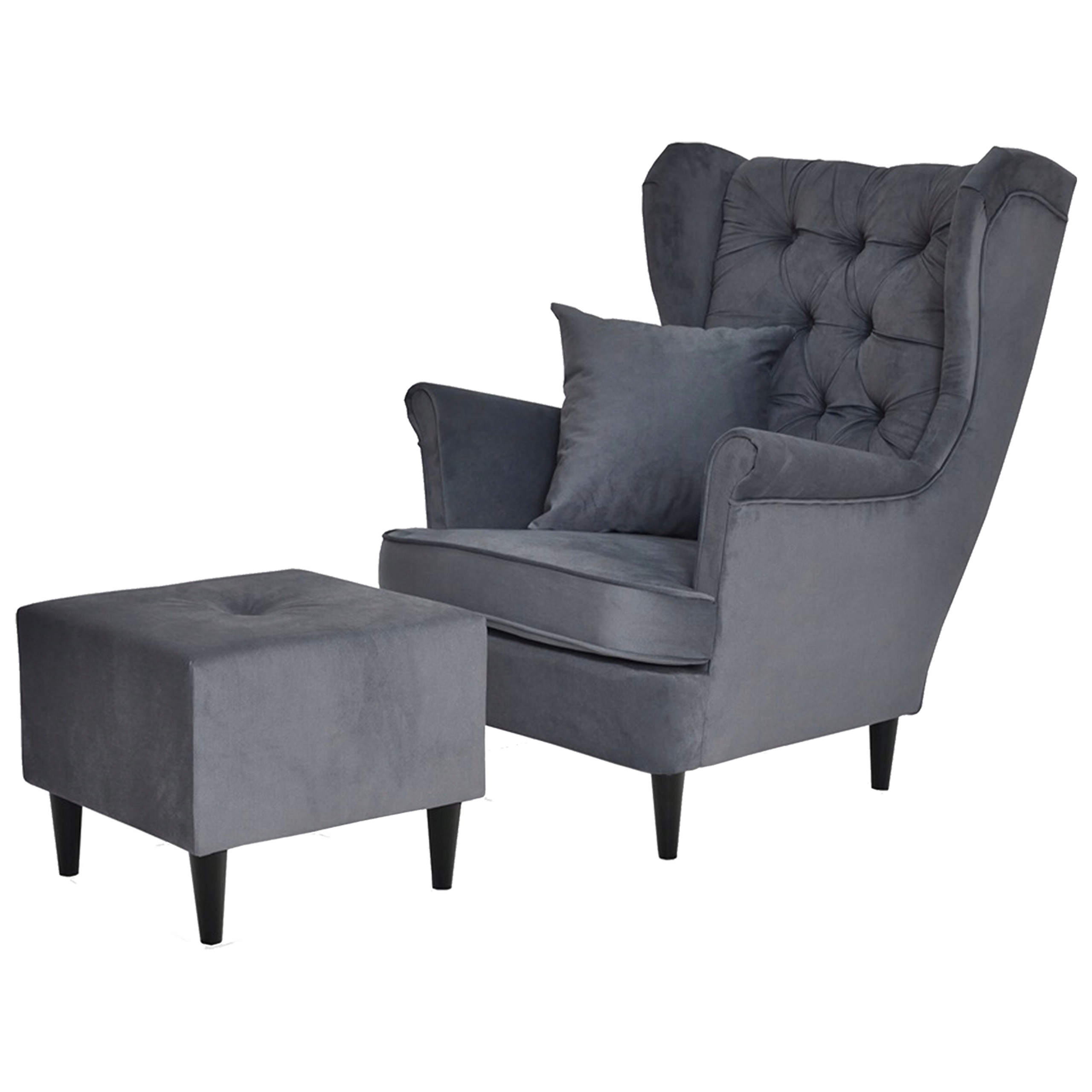 Fotel uszak Gaja z podnóżkiem, skandynawski Family Meble szary wygodny