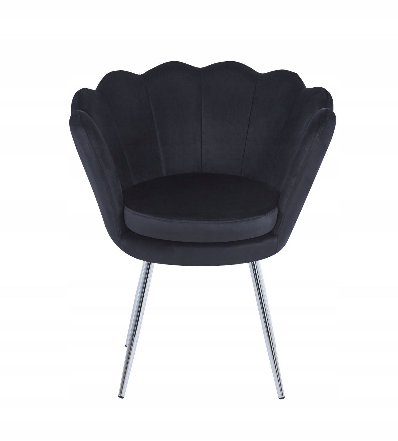 Fotel Welurowy CZARNY Elegancki na Srebrnych NOGACH Tapicerowany do SALONU