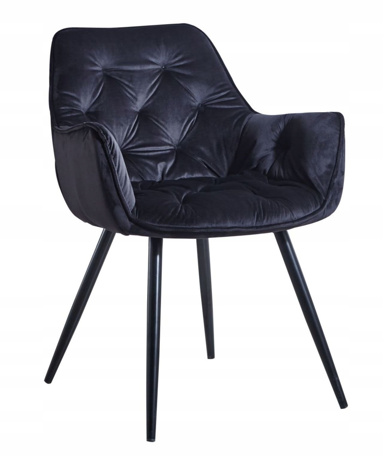 Krzesło CZARNE Welurowe Pikowane do SALONU Glamour Szerokie Furnitex