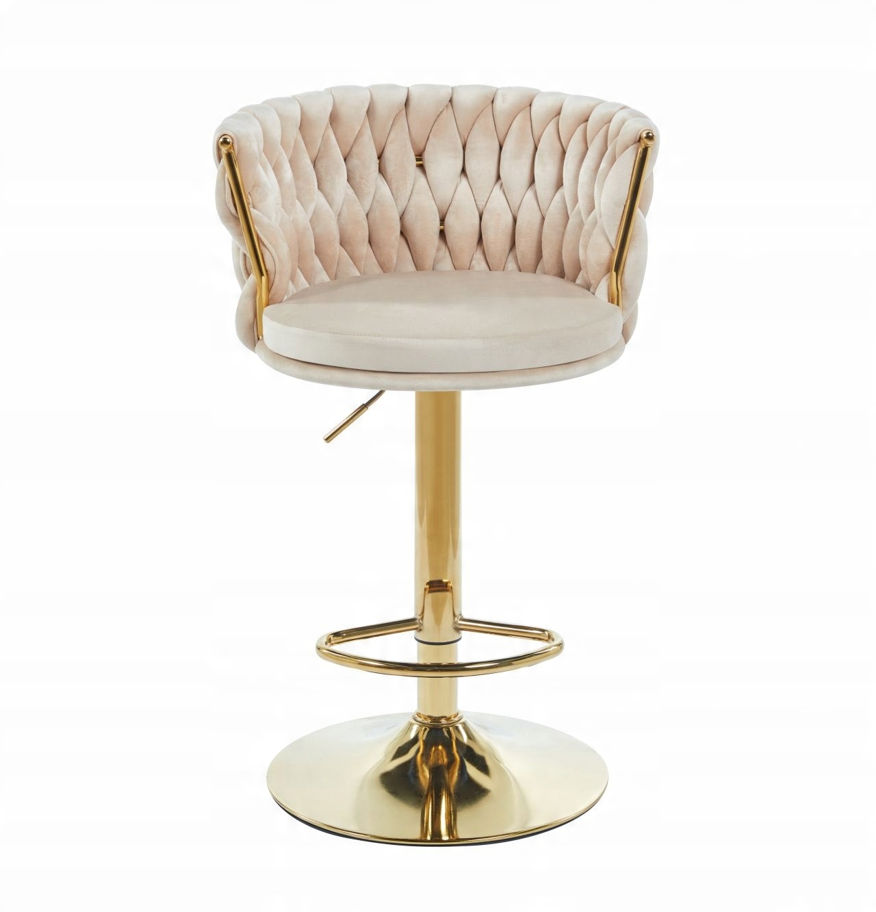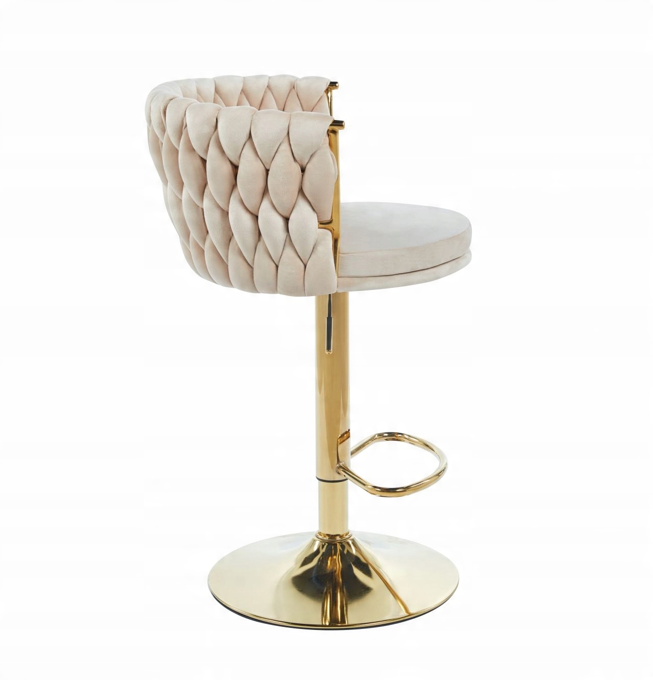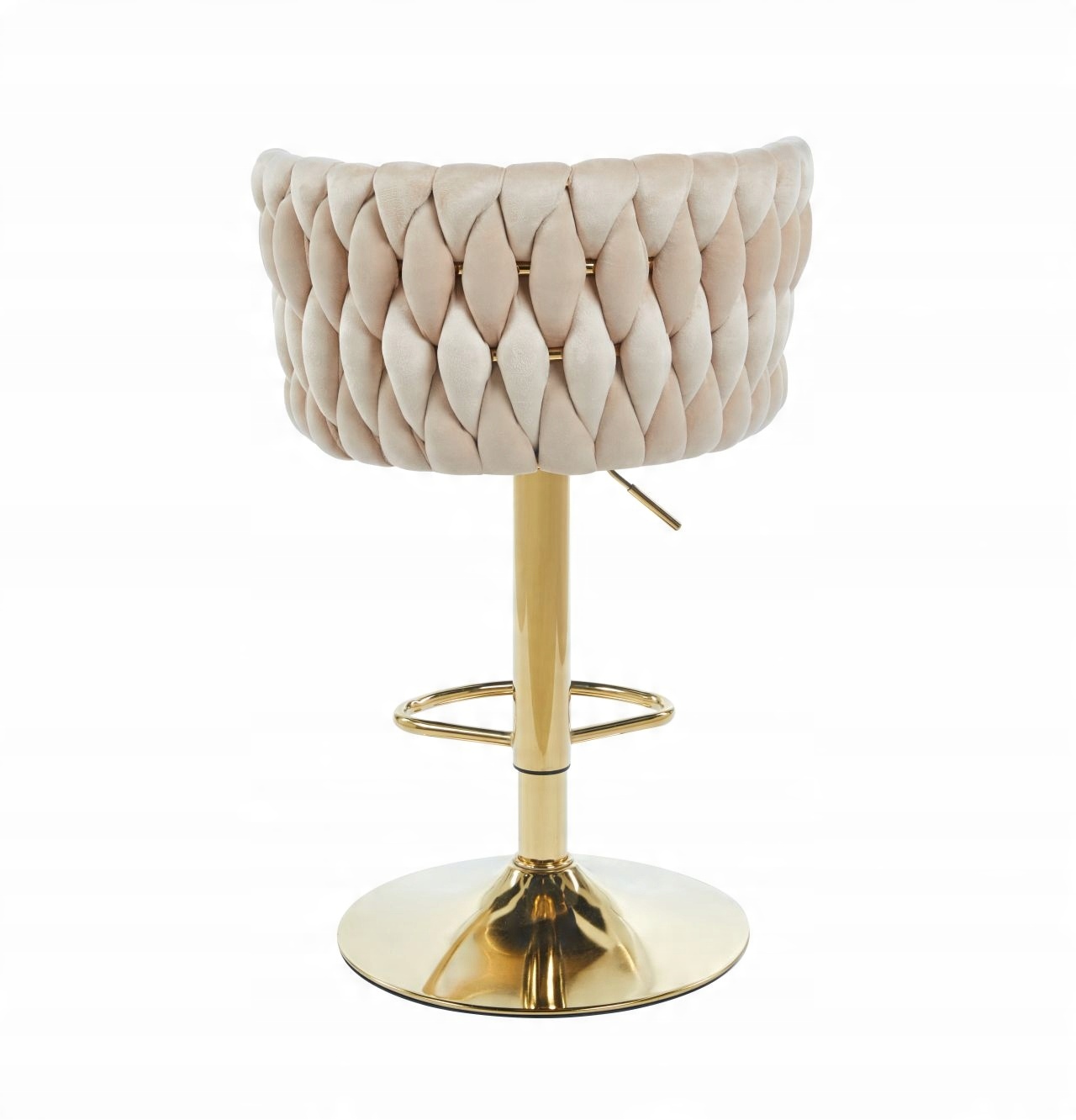 Hoker Welurowy Obrotowy Przeplatany Beżowy Złoty Stelaż