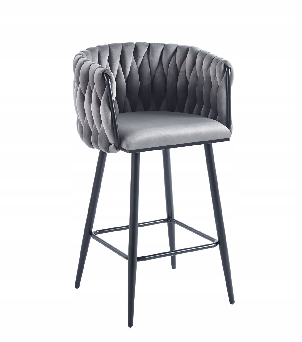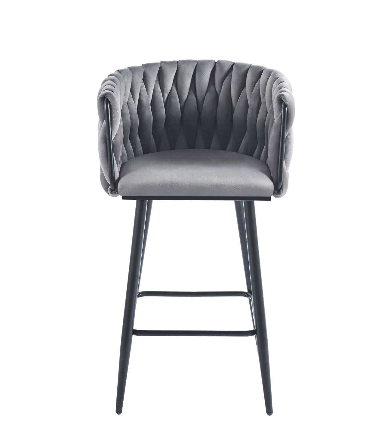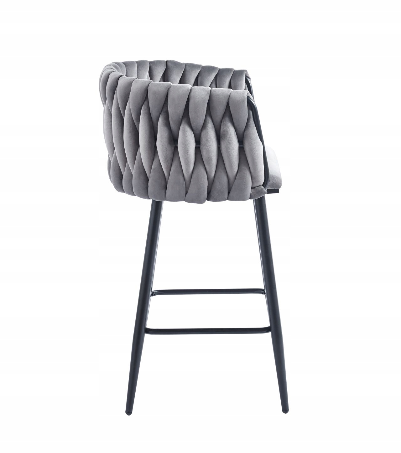 Krzesło Hoker Przeplatany SZARY GLAMOUR do WELUR do GABINETU Furnitex