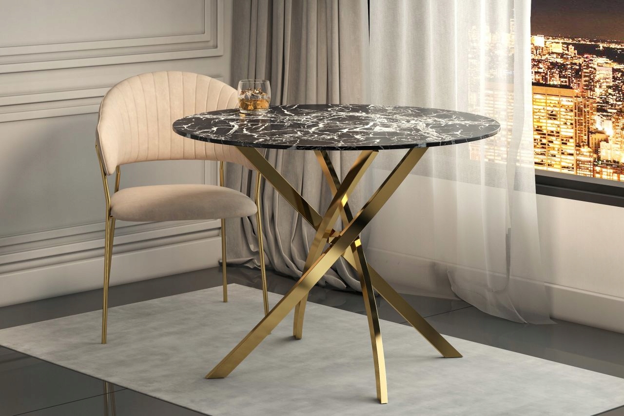 - Materiał: tkanina welwet / stal złoty chrom