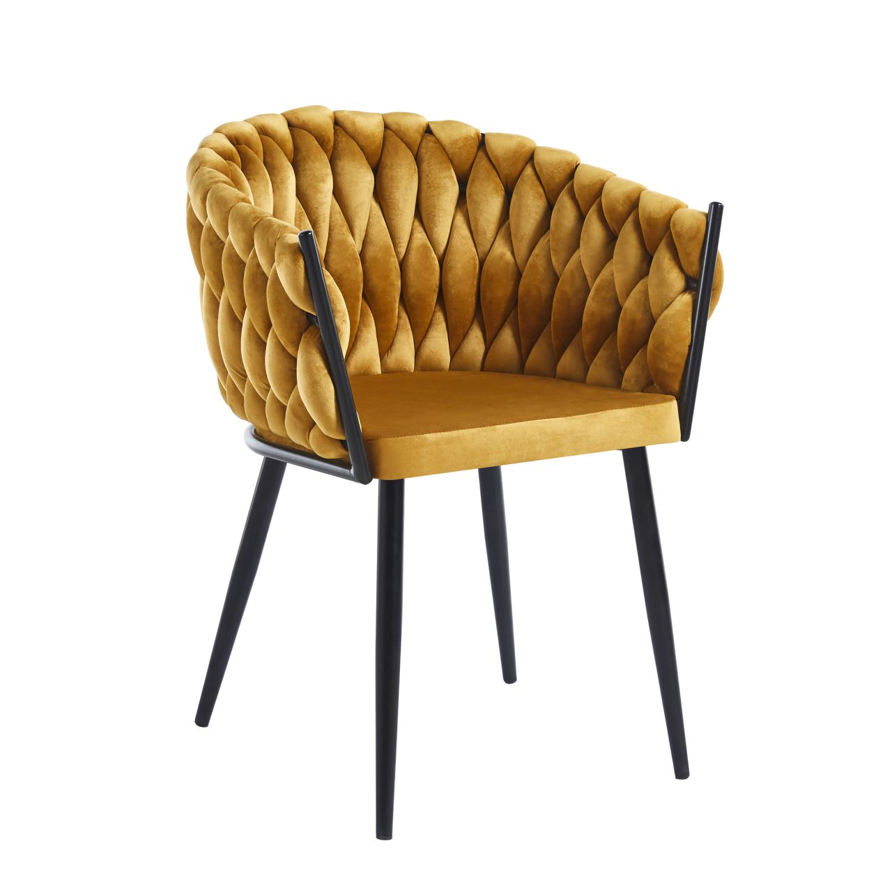 Krzesło tapicerowane idealnie wpisuje się w obecnie panujące trendy. Jego niebanalny wygląd sprawia, że z pewnością stanie się ozdobą wnętrza. Stelaż krzesła wykonany został z metalu pomalowanego proszkowo na kolor czarny. Siedzisko oraz oparcie wypełnione jest wytrzymałą i miękką pianką. Zastosowana tkanina typu velvet jest nie tylko bardzo przyjemna w dotyku ale również świetnie sprawdza się w codziennym użytkowaniu.