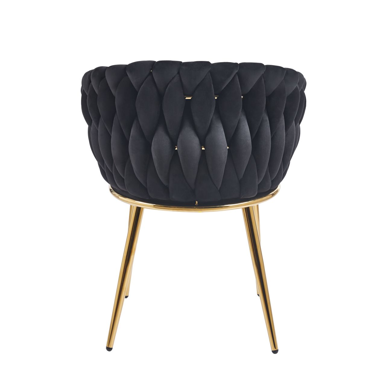 Krzesło welwet przeplatane idealnie wpisuje się w obecnie panujące trendy. Jego niebanalny wygląd sprawia, że z pewnością stanie się ozdobą wnętrza. Stelaż krzesła wykonany został z metalu pomalowanego proszkowo na kolor złoty. Siedzisko oraz oparcie wypełnione jest wytrzymałą i miękką pianką. Zastosowana tkanina typu velvet jest nie tylko bardzo przyjemna w dotyku ale również świetnie sprawdza się w codziennym użytkowaniu.