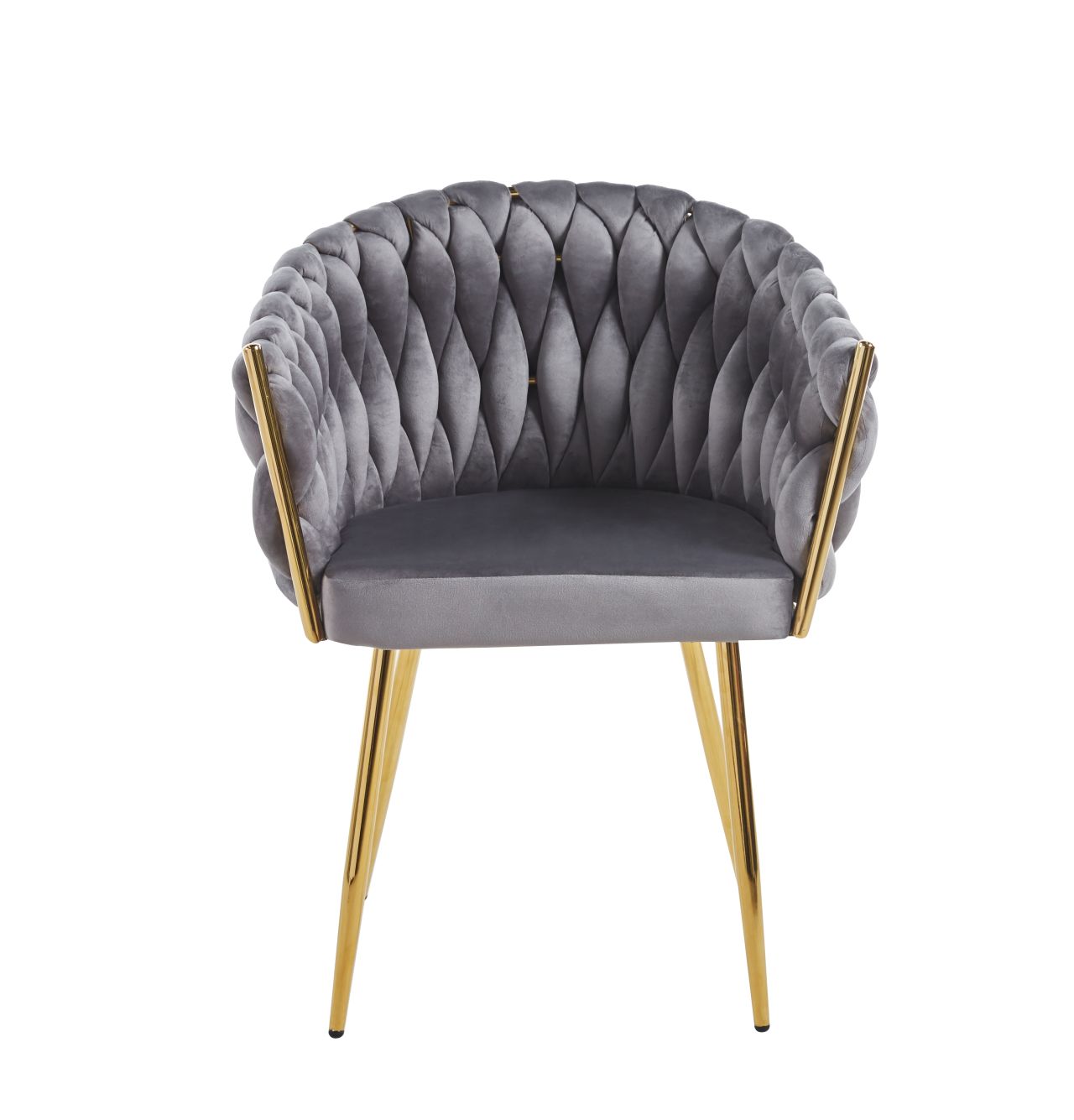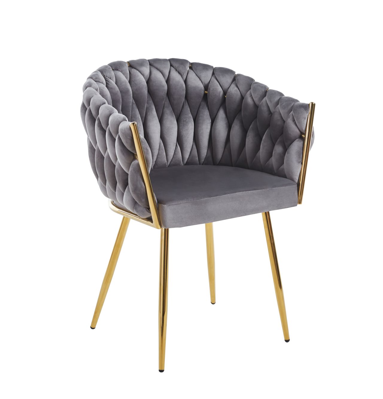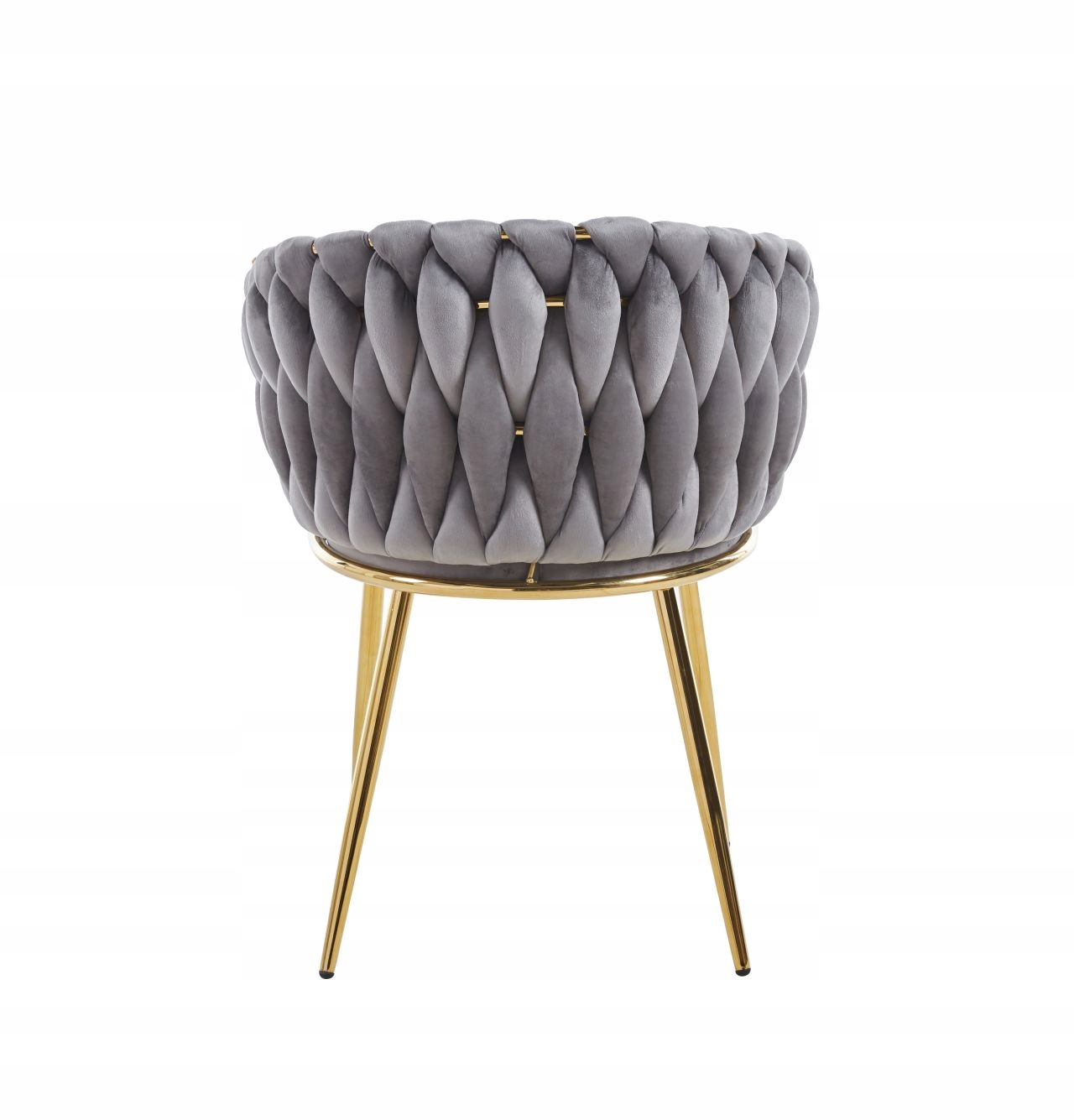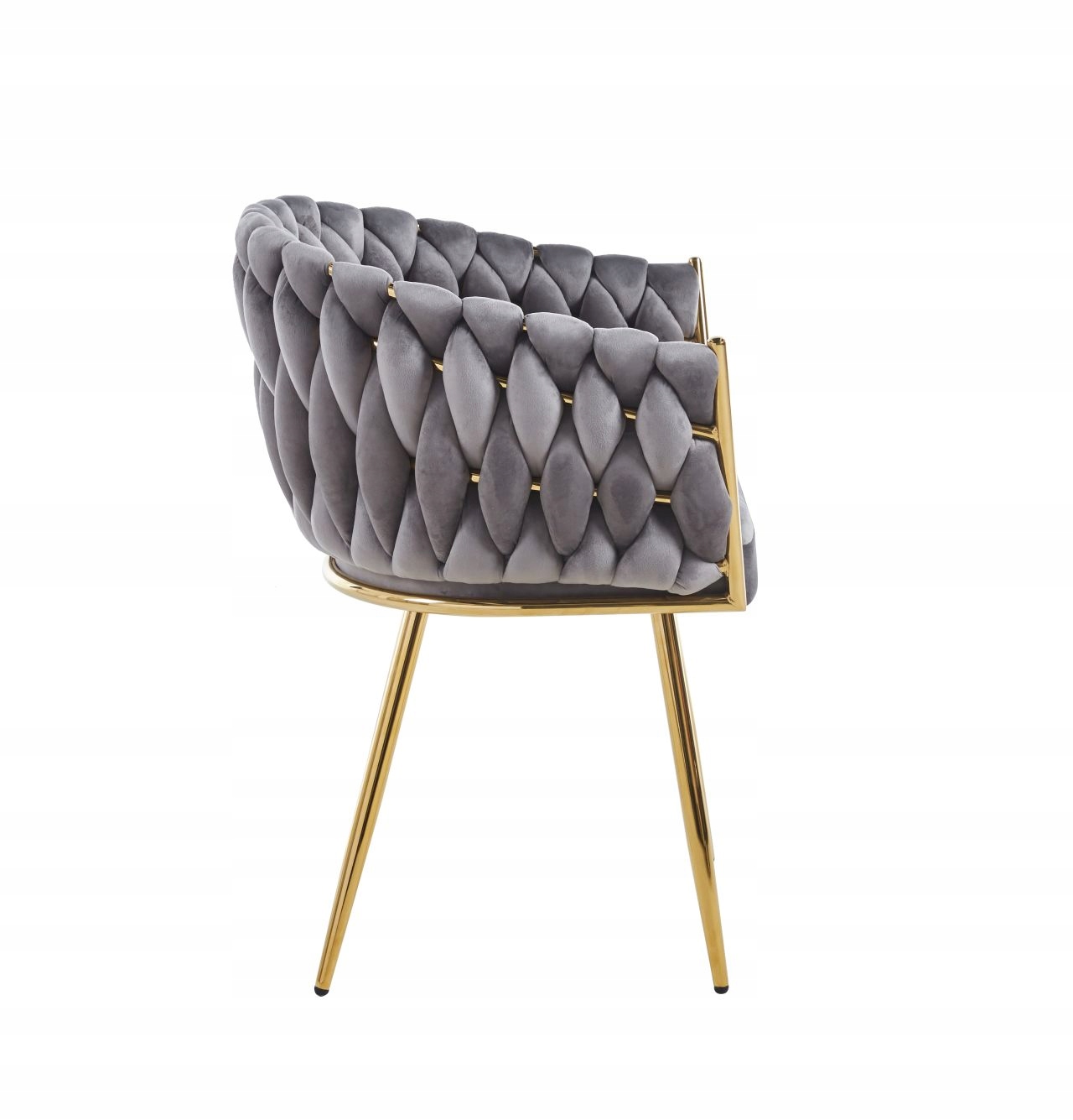 Szare Krzesło Przeplatane Welwet Nowoczesne do Salonu Złote NOGI Furnitex