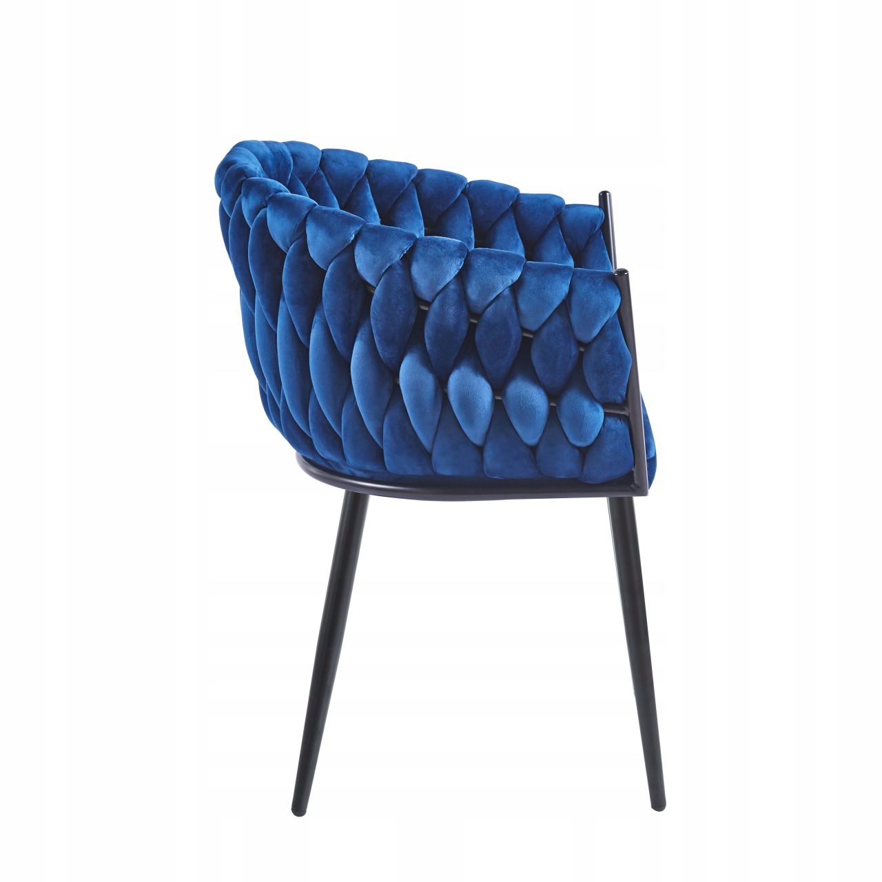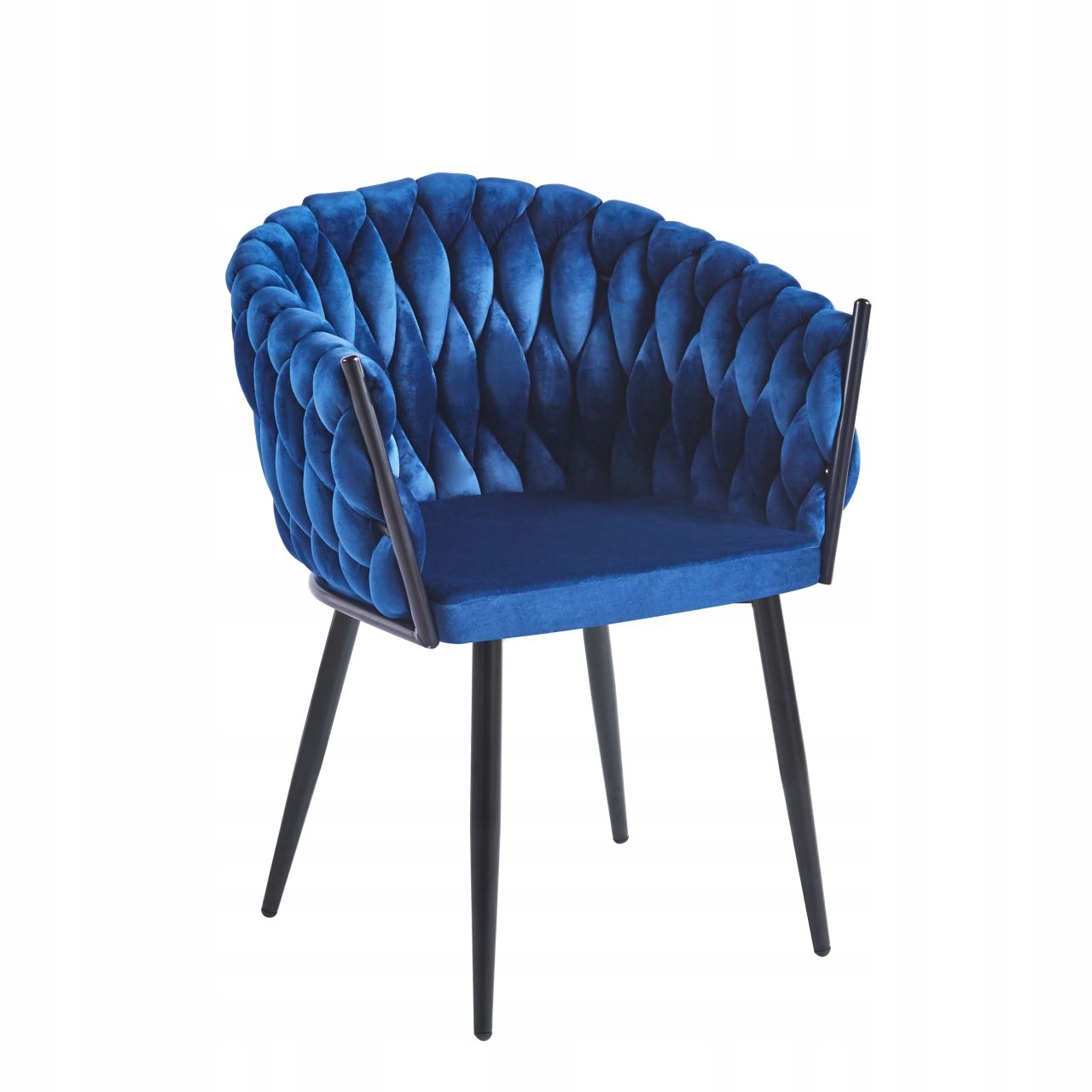 Przeplatane Niebieskie Krzesło WELUROWE Furnitex do Pokoju DZIENNEGO