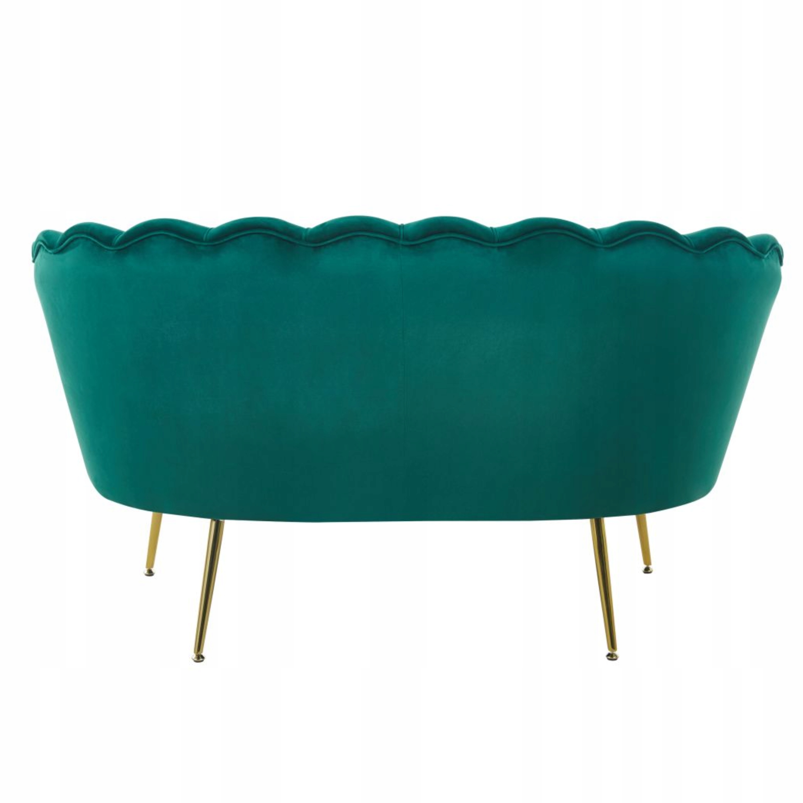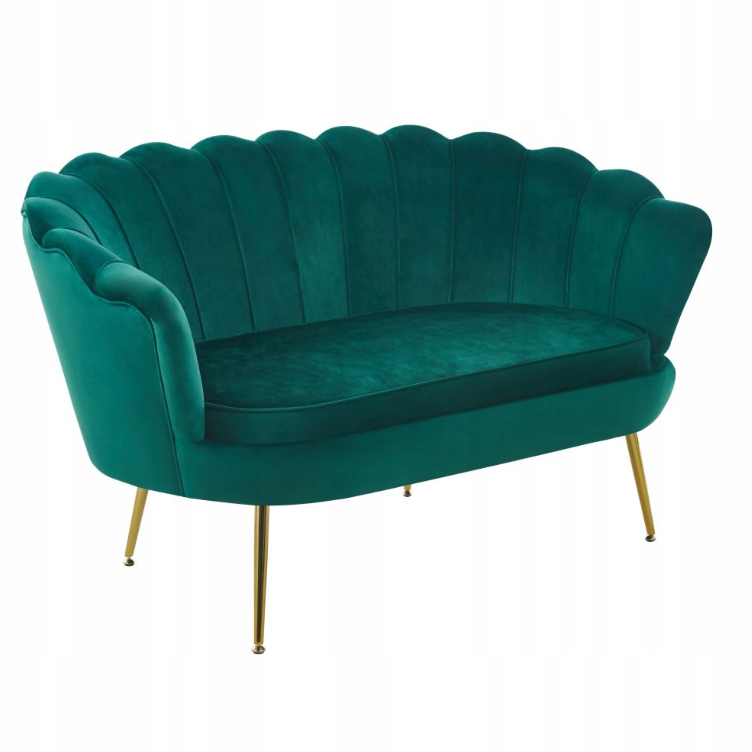 Kanapa 2-osobowa CIEMNA ZIELEŃ WELUROWA na Złotych nogach do SALONU