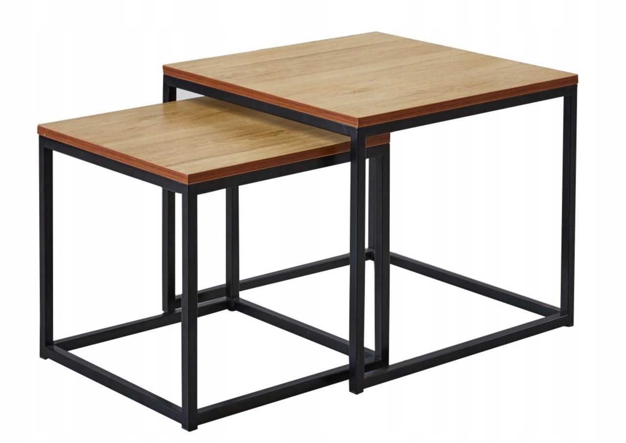 Oba stoliki posiadają blaty wykonane z trwałej okleiny oraz stalowe nogi malowane proszkowo na kolor czarny. To zapewnia im wytrzymałość i stabilność, które przetrwają wiele lat użytkowania.