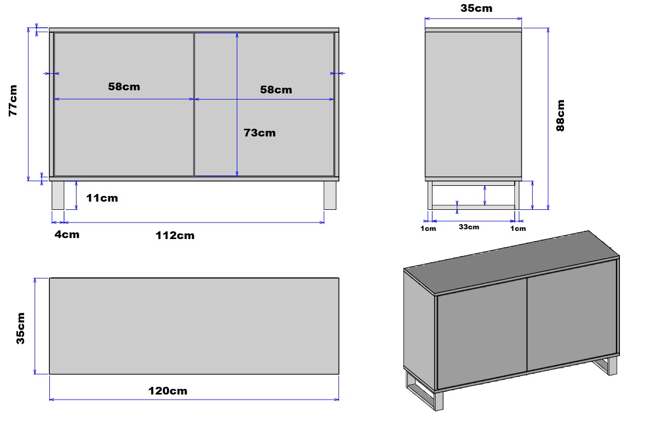 - Wymiary: szerokość 120 cm; wysokość 88 cm; głębokość 35 cm.