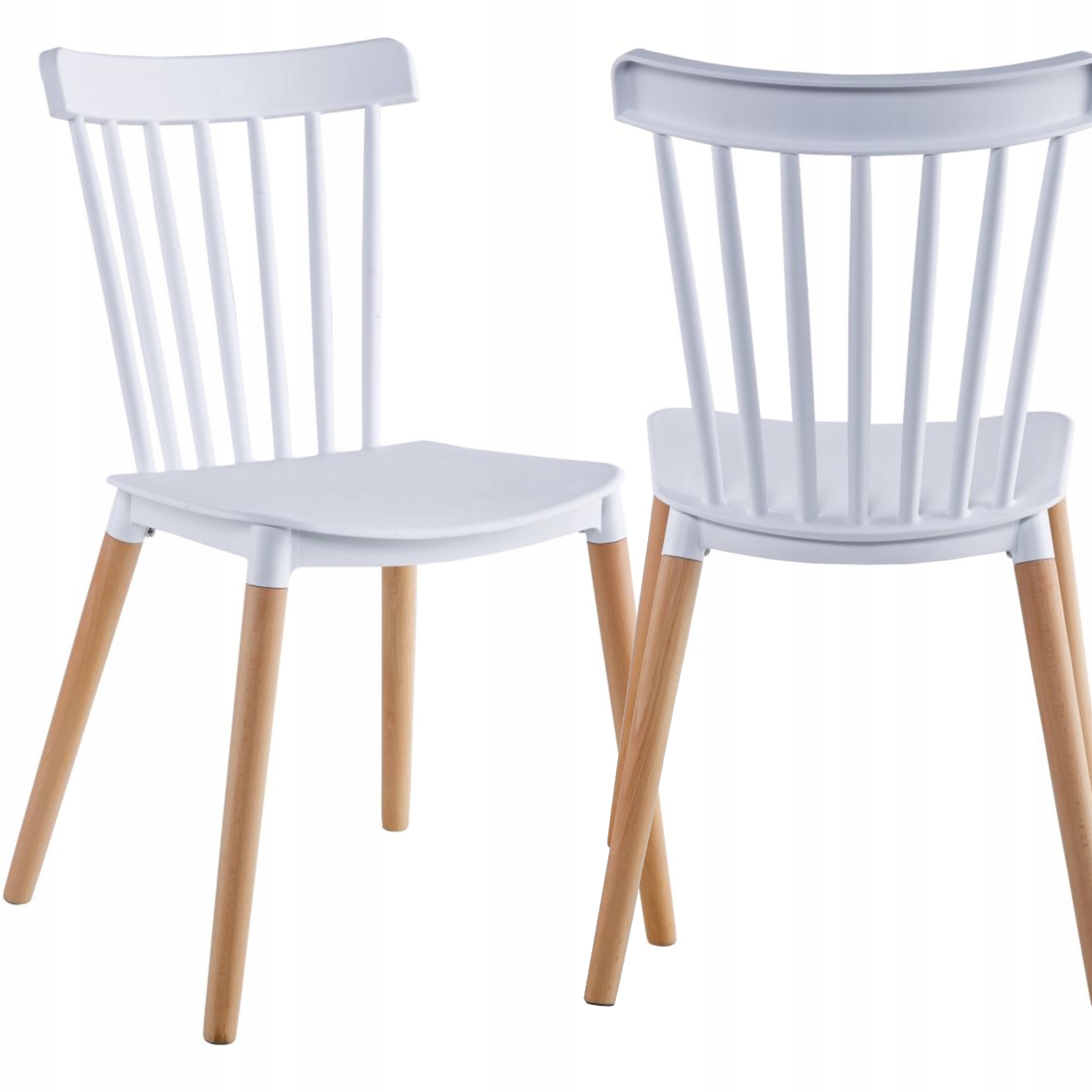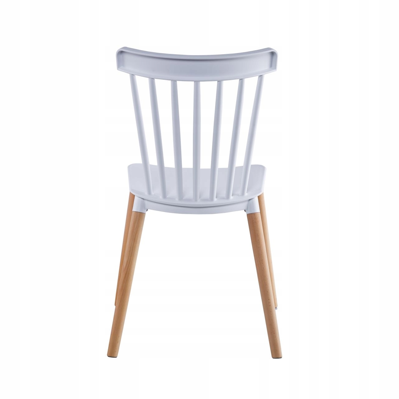 Krzesło BIAŁE Skandynawskie z DREWNIANE JASNY BUK Retro Plastikowe Kuchenne