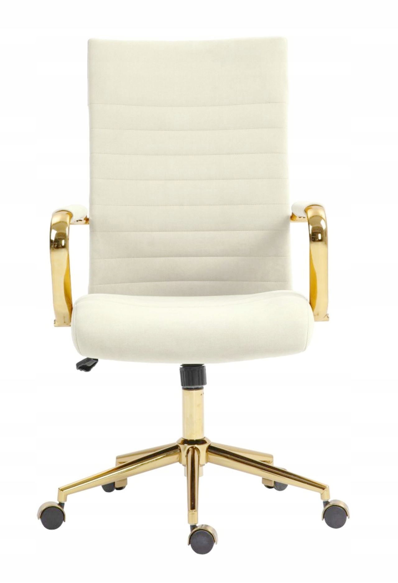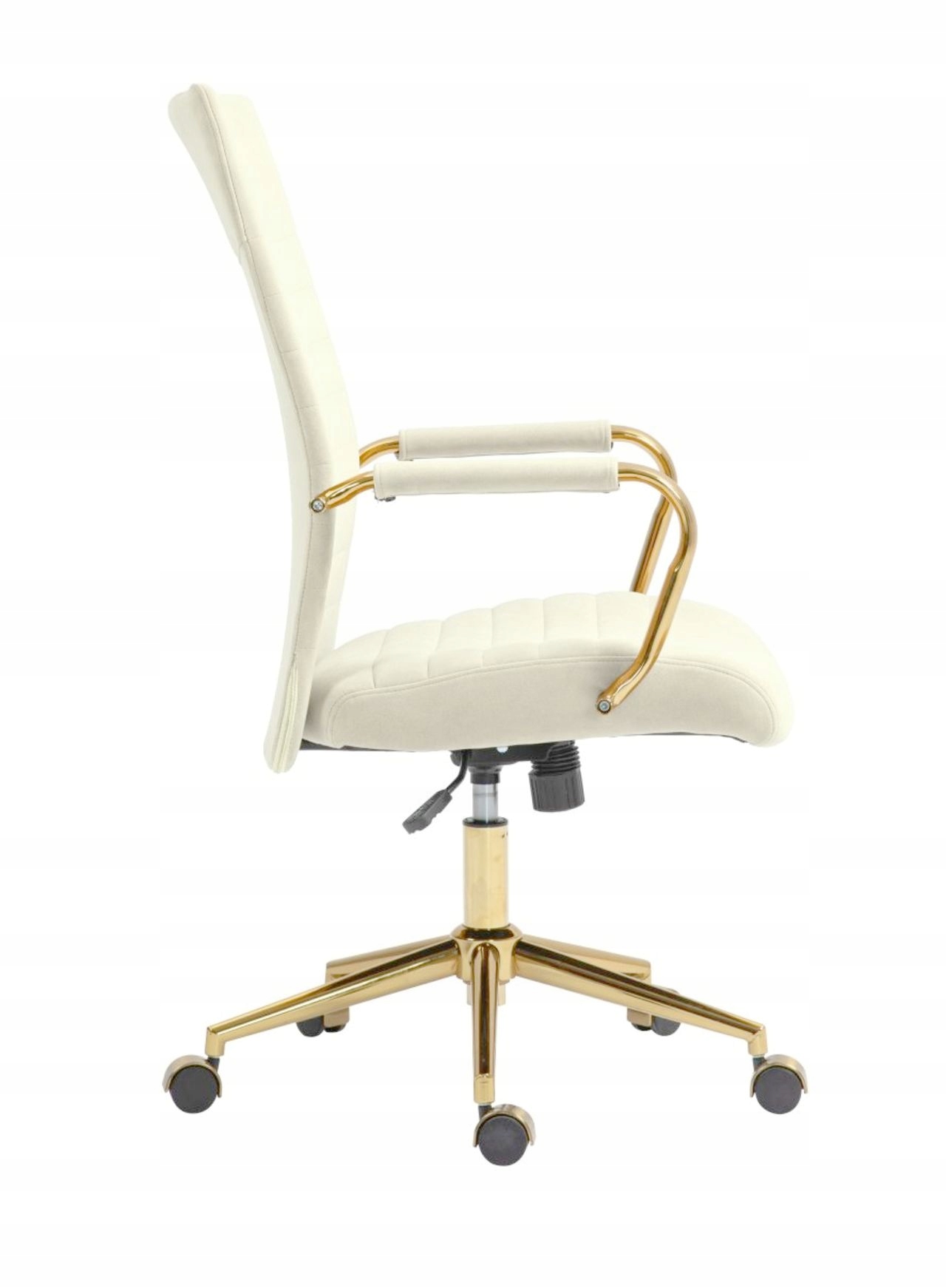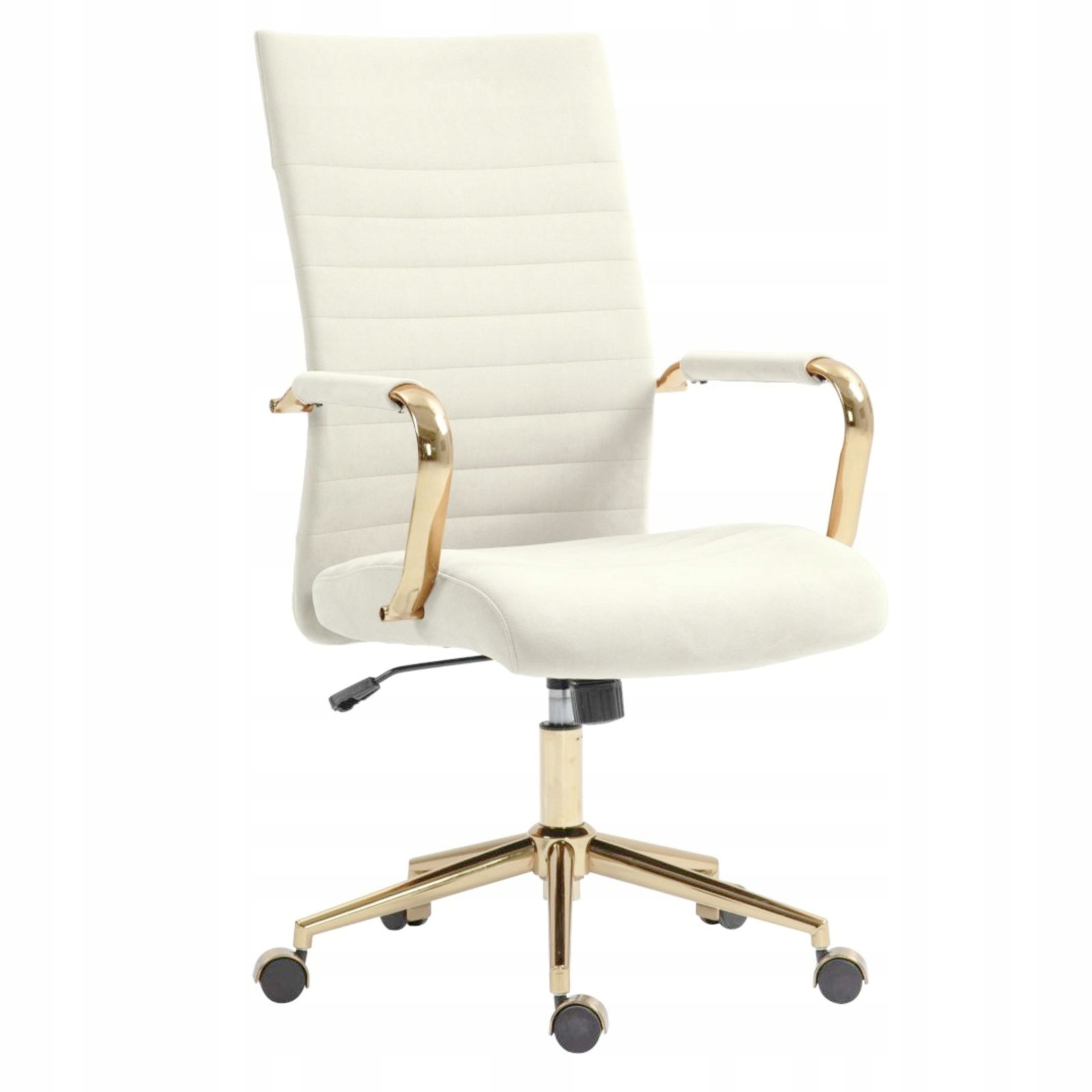 - kolor: siedzisko i oparcie — jasny beż; podstawa i podłokietniki — złote