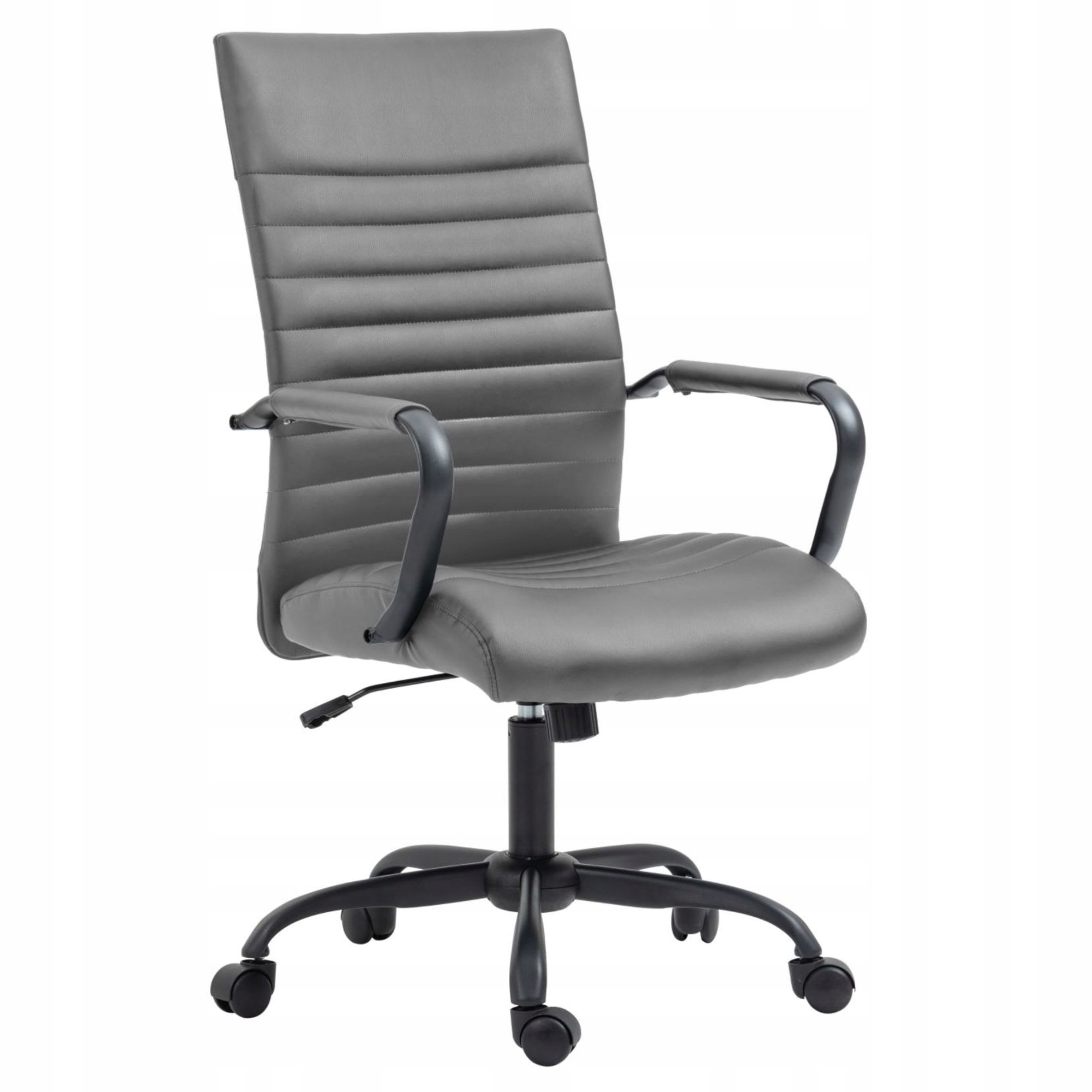 Krzesło OBROTOWE szare z EKO SKÓRY Regulowane Biurowe na Kółkach Furnitex