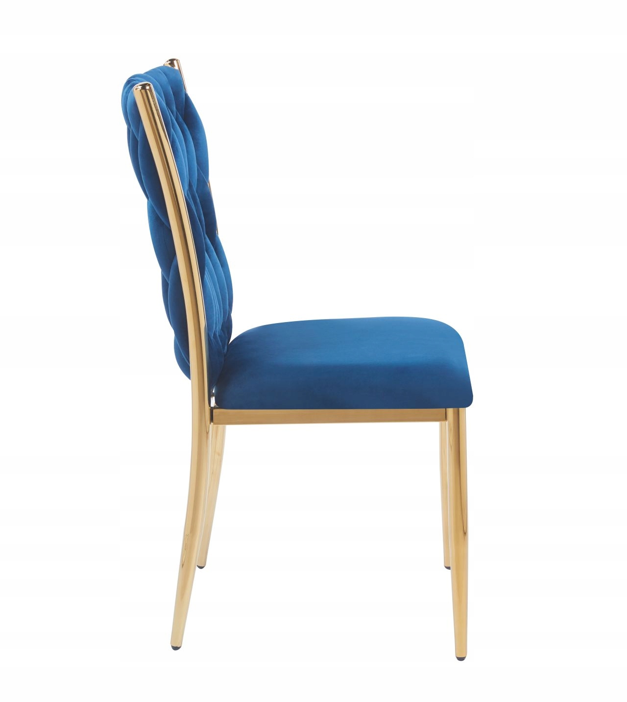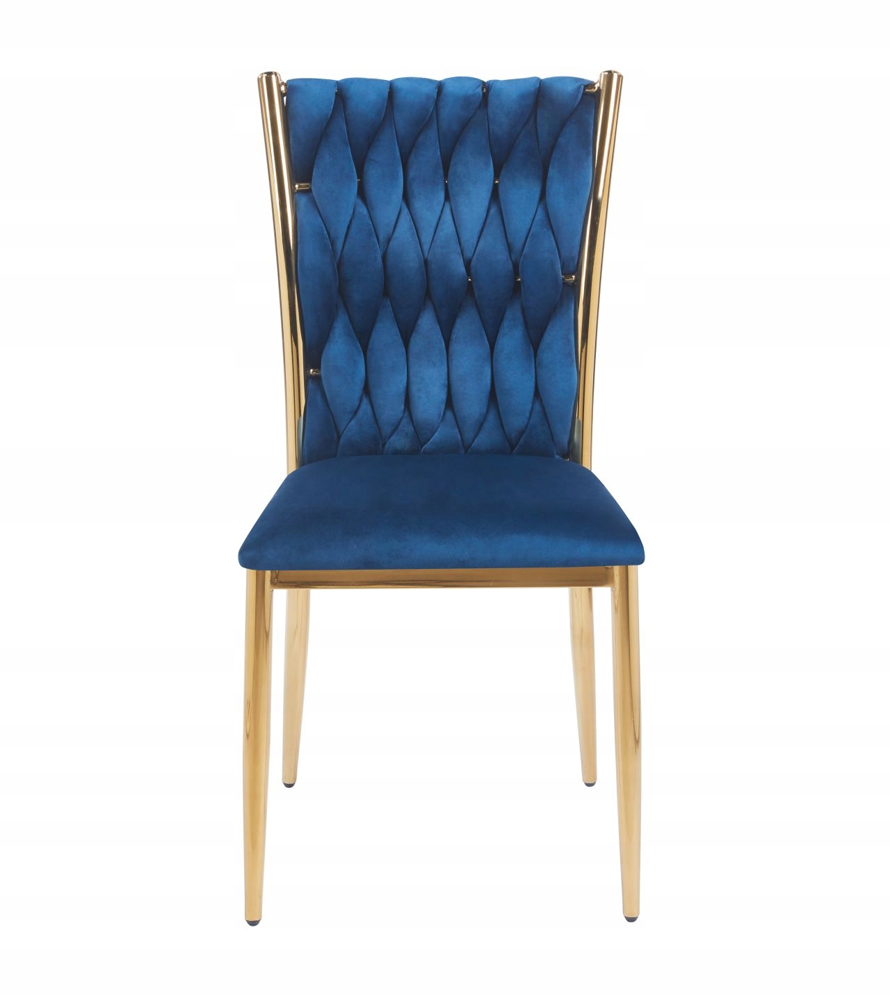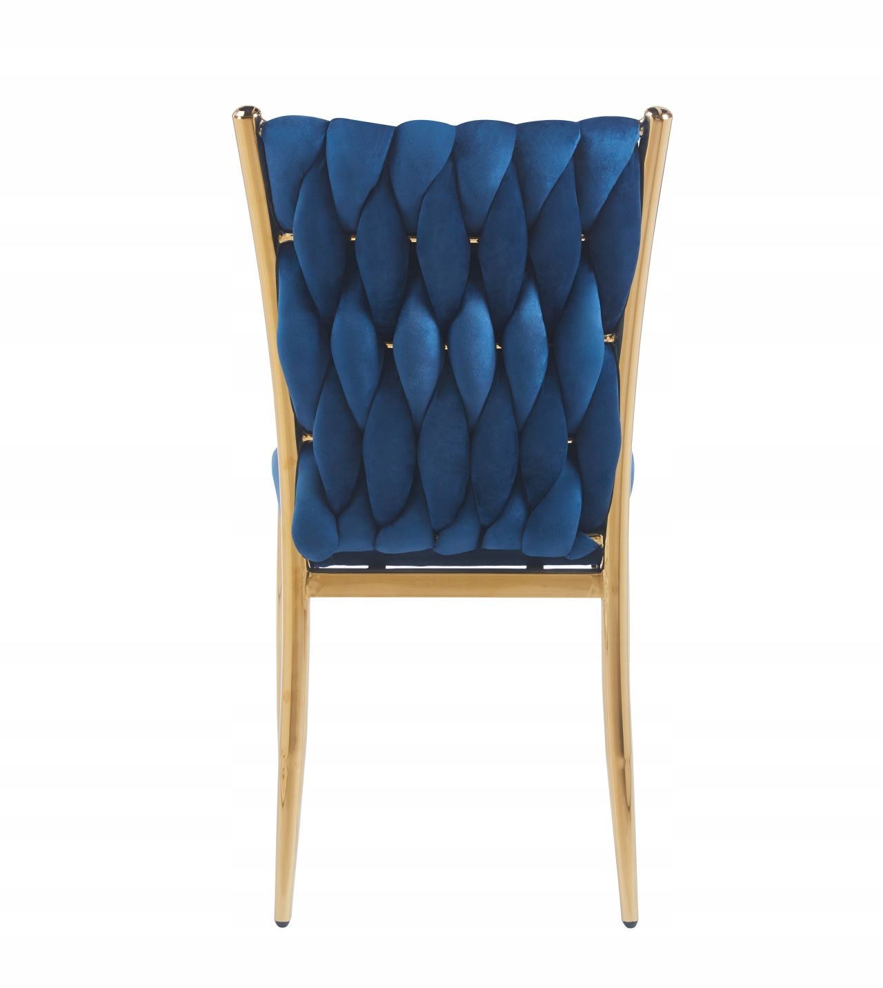 Krzesło przeplatane Glamour Niebieskie WELUROWE Miękkie ZŁOTY STELAŻ
