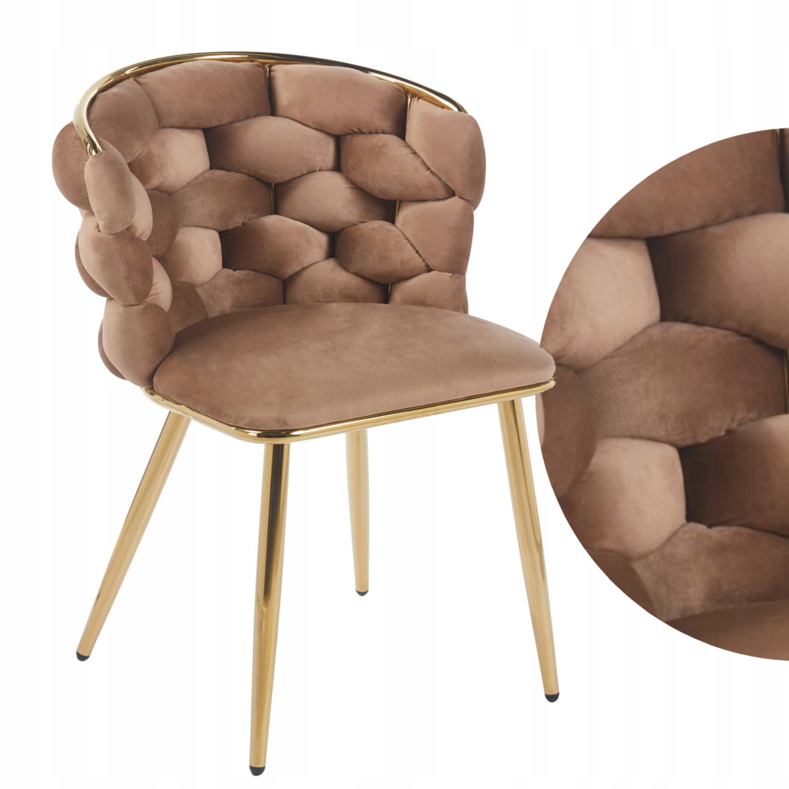 Krzesło PRZEPLATANE Welurowe CAPPUCCINO do Salonu Gabinetu Tapicerowane