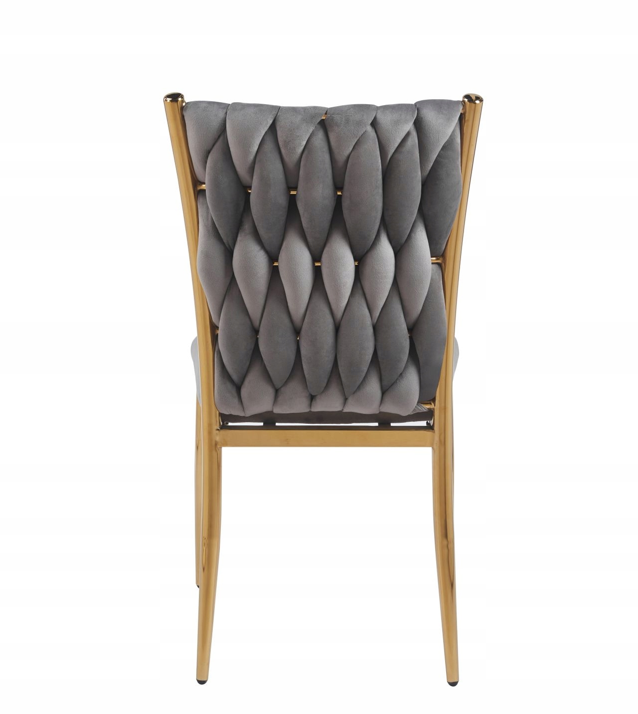 Krzesło SZARE PRZEPLATANE WELUROWE Nowoczesne ZŁOTY STELAŻ GLAMOUR