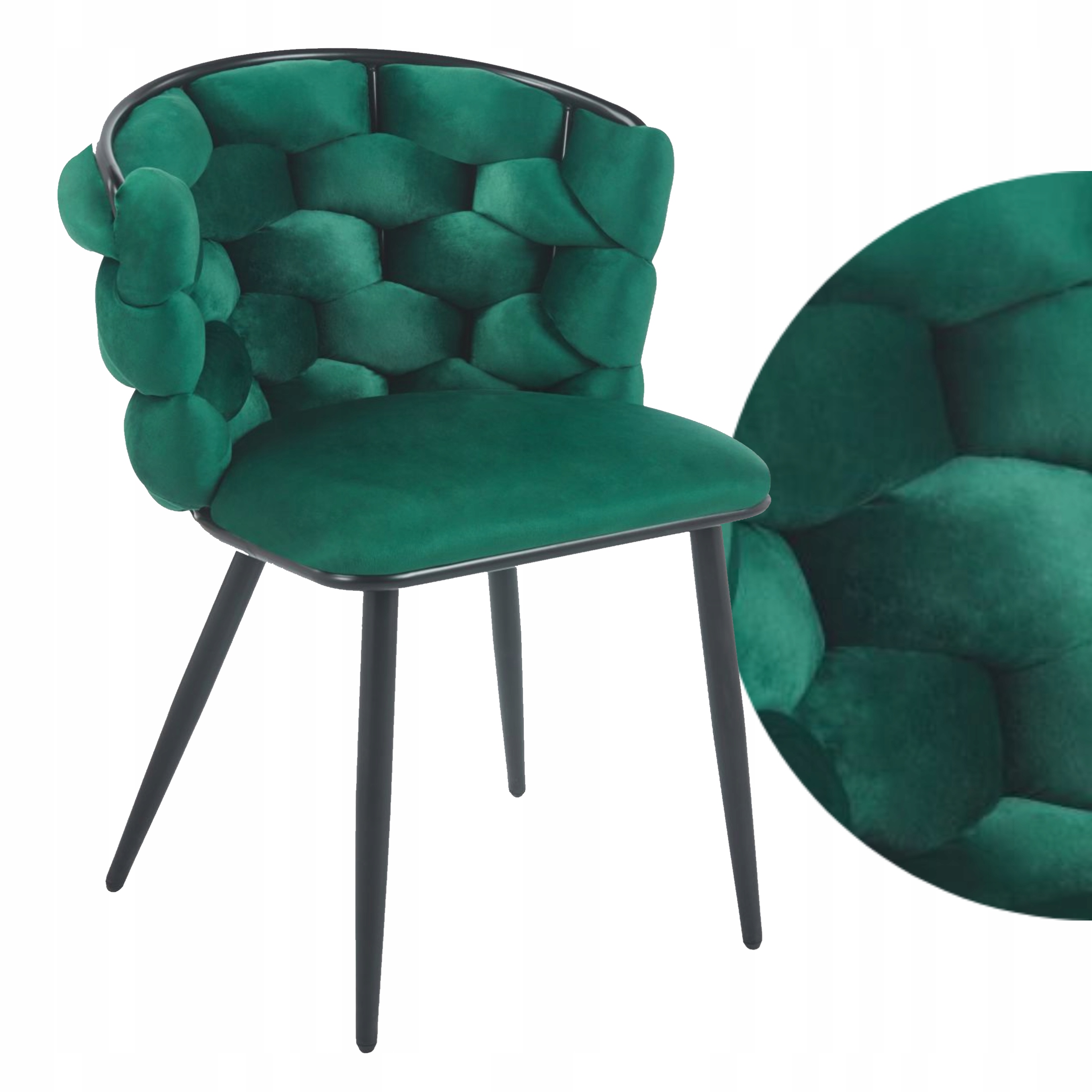Krzesło ZIELONE Welurowe Przeplatane Proste do Salony Gabinetu Glamour