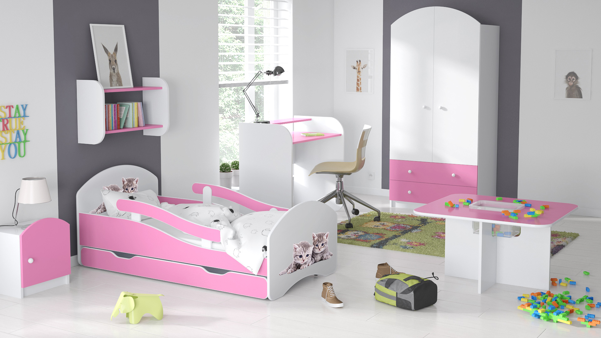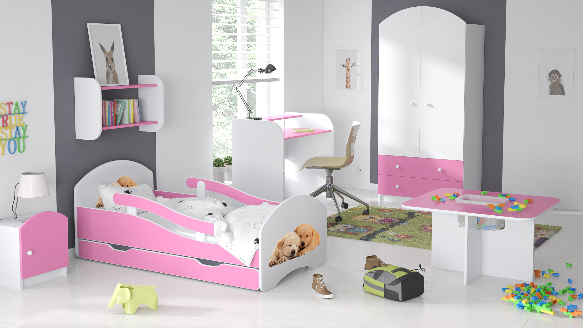 - Dwustronne łóżko dziecięce w kolorze biało‑różowym
