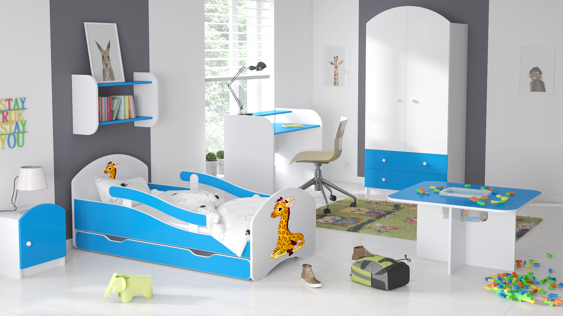 Łóżko dziecięce LEO 180x80 w klasycznej, biało-niebieskiej odsłonie łączy funkcjonalność z nowoczesnym designem. Wykonane z wysokiej jakości płyty meblowej gwarantuje trwałą i stabilną konstrukcję, która rośnie razem z dzieckiem. Zaokrąglone barierki zapewniają maksymalne bezpieczeństwo podczas snu, a możliwość ich zdjęcia w ciągu dnia ułatwia swobodną zabawę.
