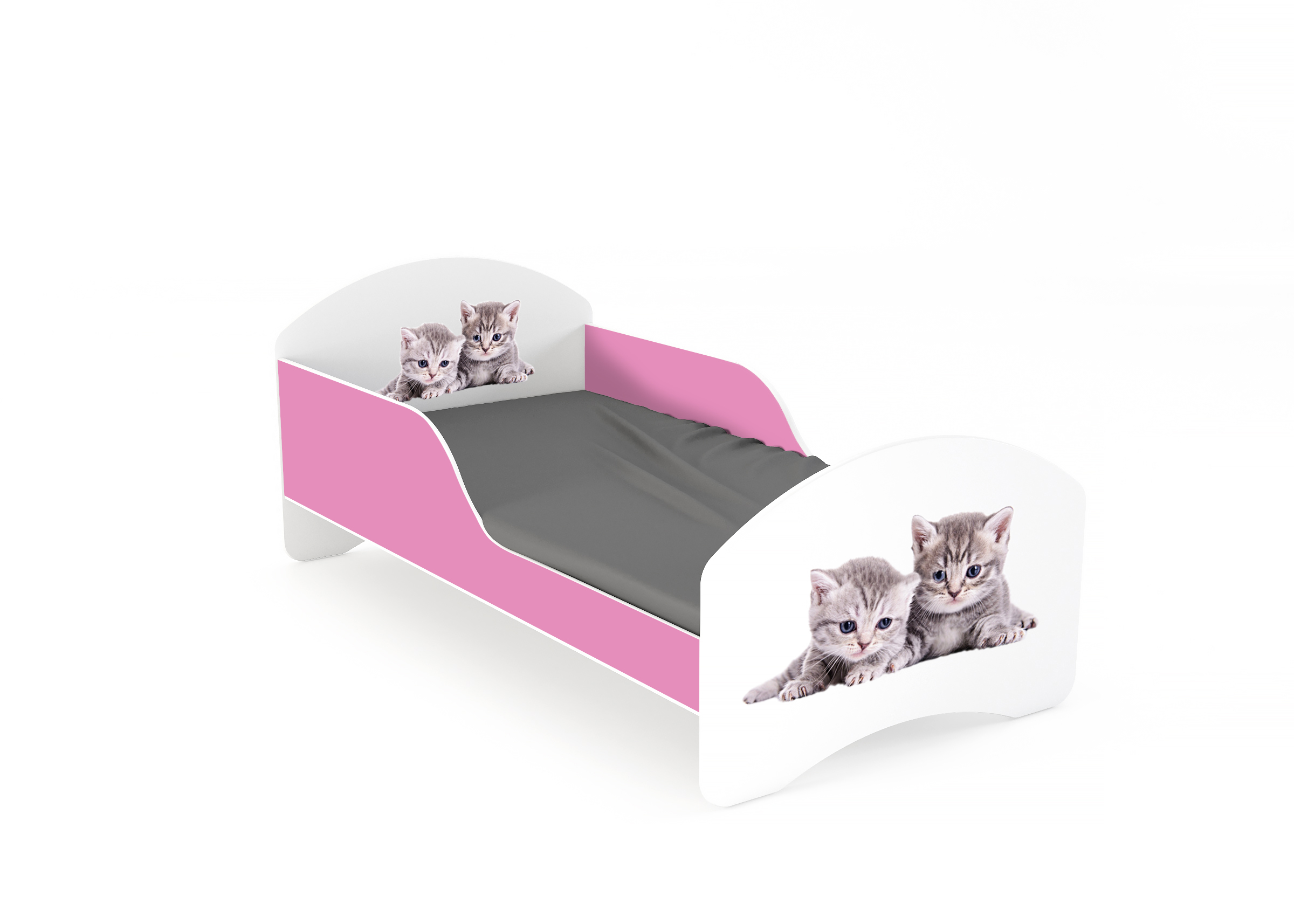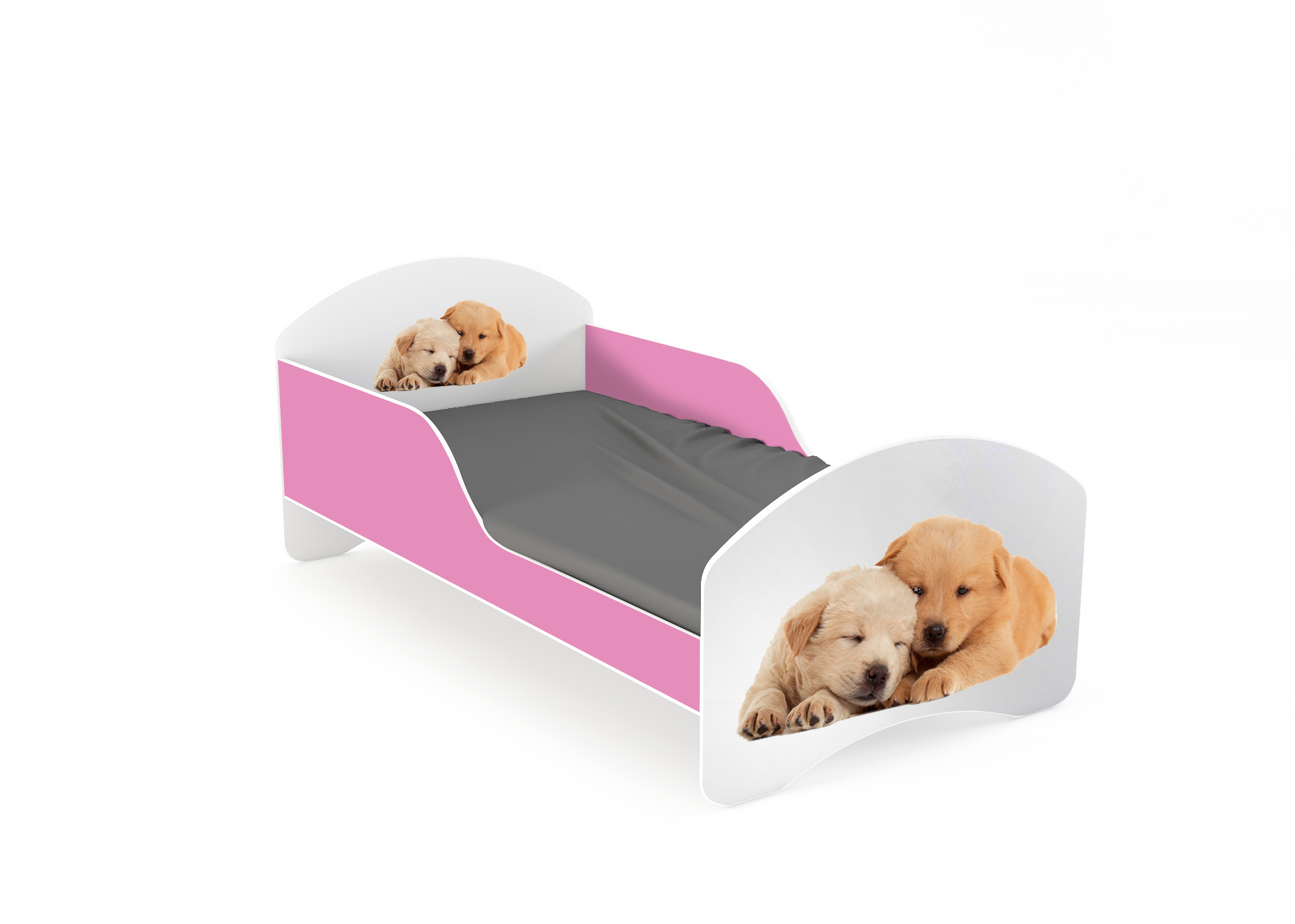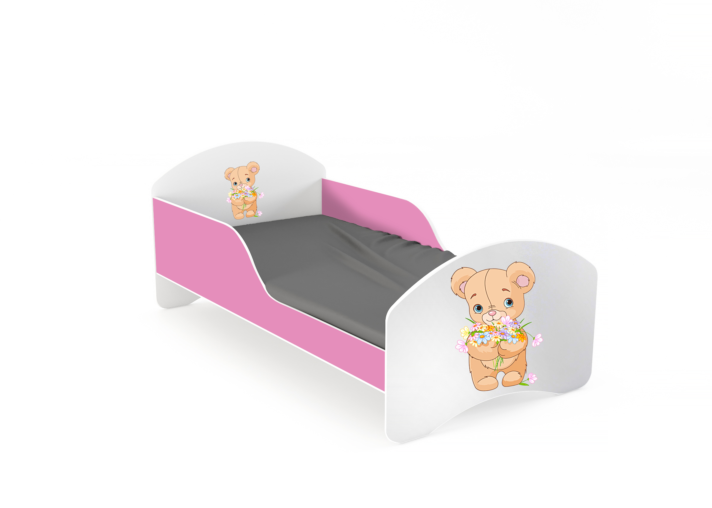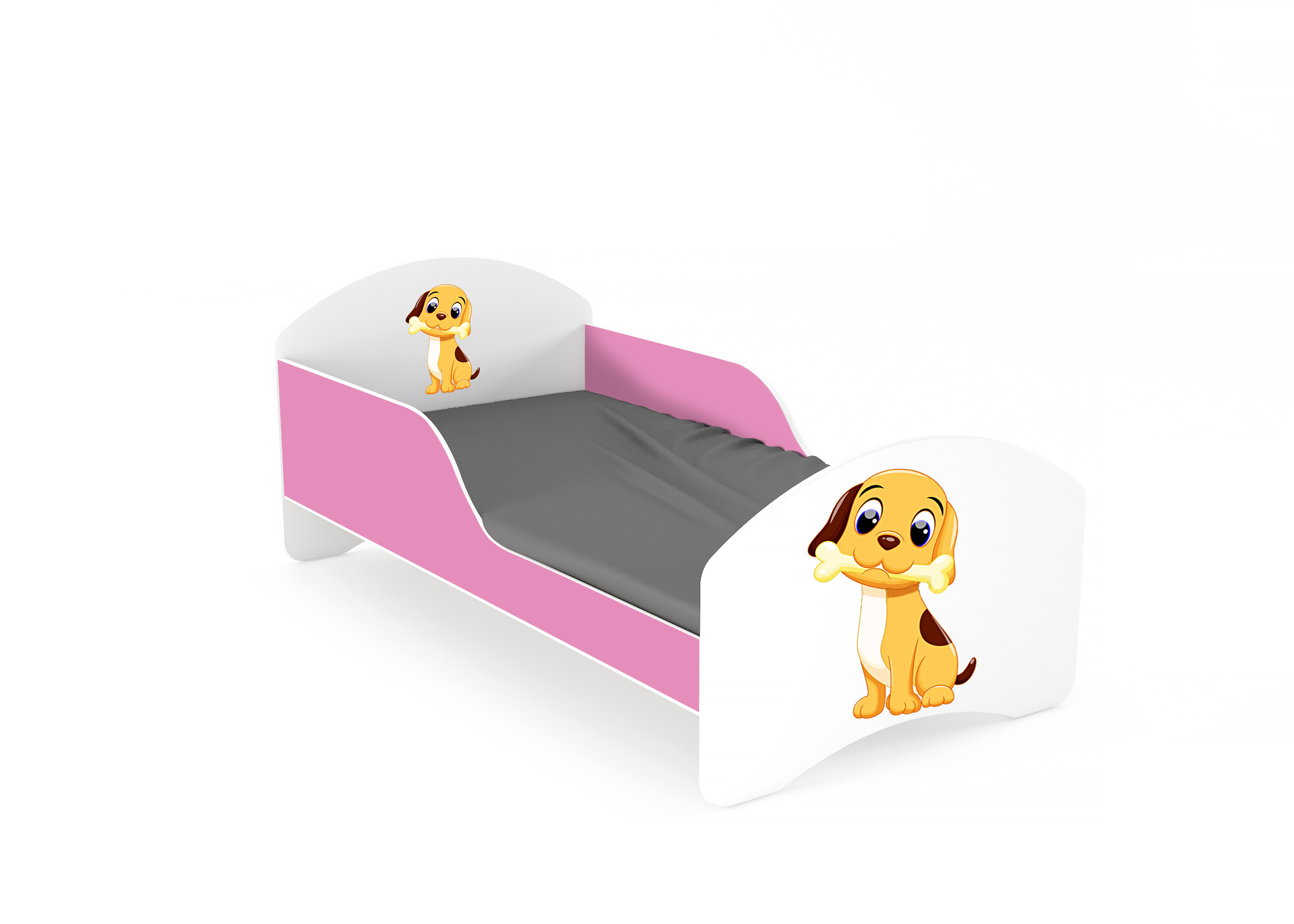 Łóżko Dziecięce LEO2 140x70 Biało Różowe Barierek Ochronny