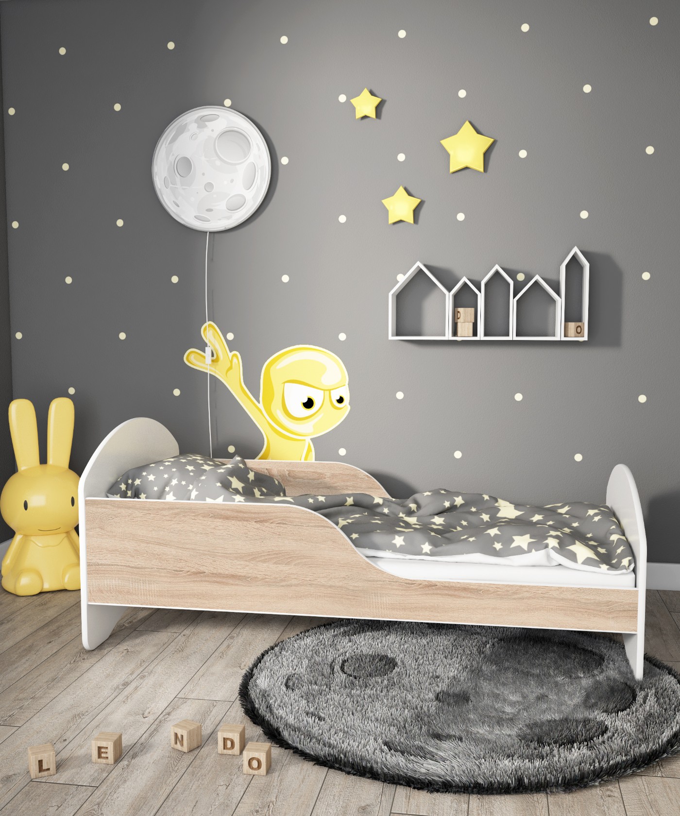 Odpowiednio wyprofilowane boki, z wyższym zagłówkiem, tworzą praktyczne barierki ochronne, które skutecznie chronią malucha przed wypadnięciem z łóżka. Dodatkowo wszystkie elementy wyposażone są gumowym obrzeżem, które zabezpiecza przed urazami i zapewnia miękkie, estetyczne wykończenie.