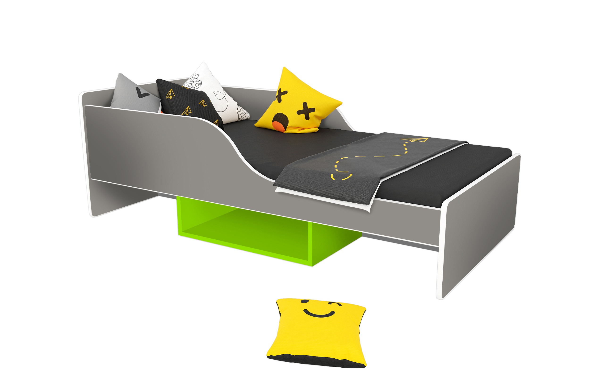 Łóżko Dziecięce Smile 140x70 Szaro Limonkowe Bezpieczne
