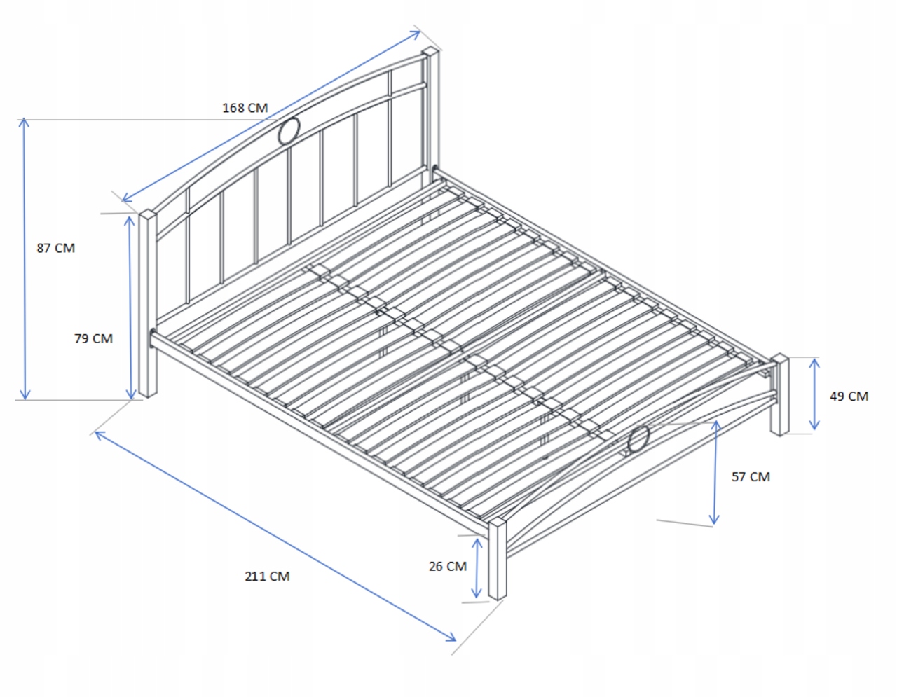 Długość całkowita wynosząca 211 cm pozwala na komfortowy sen, a wysokość (bez materaca): 49 cm