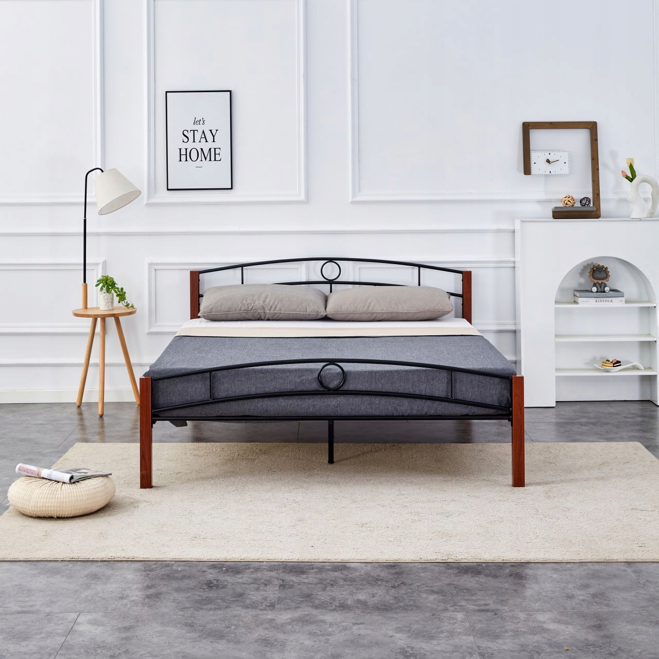 ŁÓZKO Metalowe CZARNE VINTAGE 160x200cm z STELAŻEM Brązowe NOGI