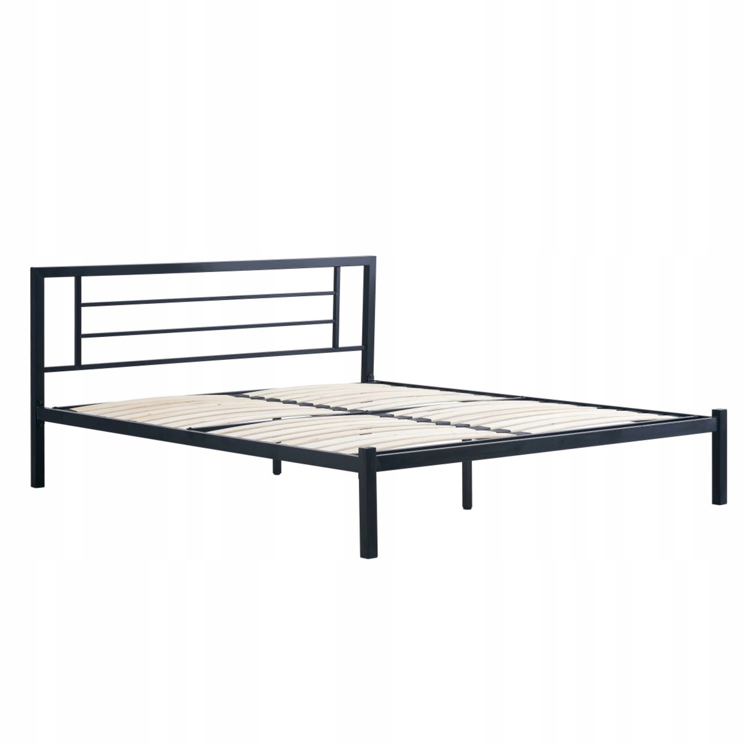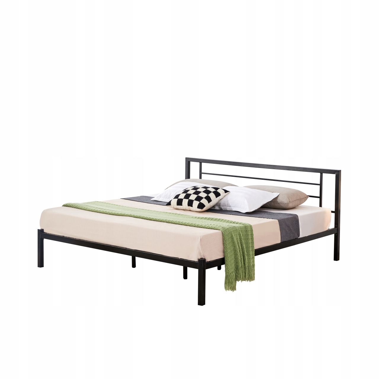 Metalowe CZARNE ŁÓŻKO Z STELAŻEM DUŻE 160x200CM KLASYCZNE do SALONU