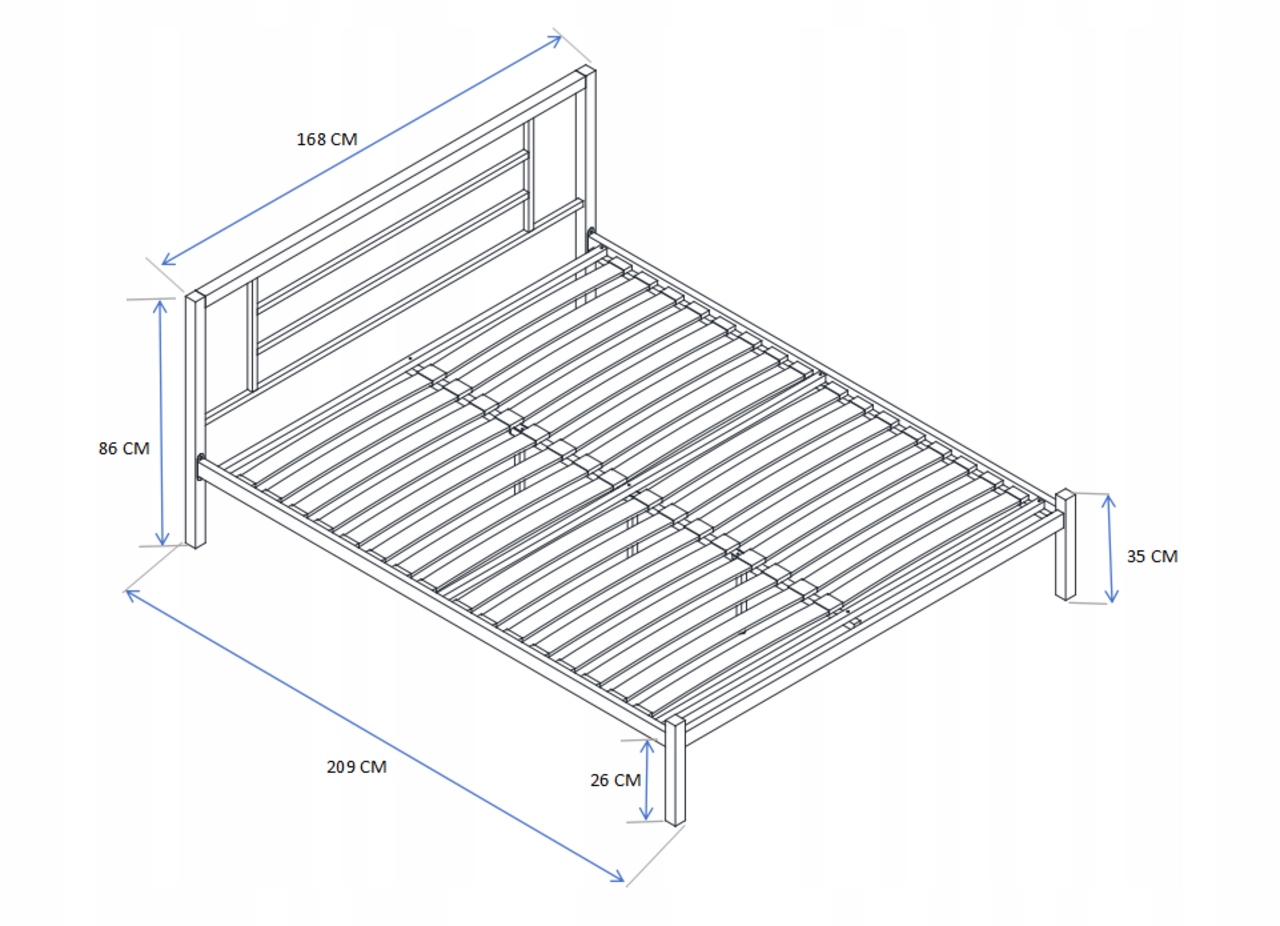 Długość całkowita wynosząca 209 cm pozwala na komfortowy sen, a wysokość (bez materaca): 35 cm