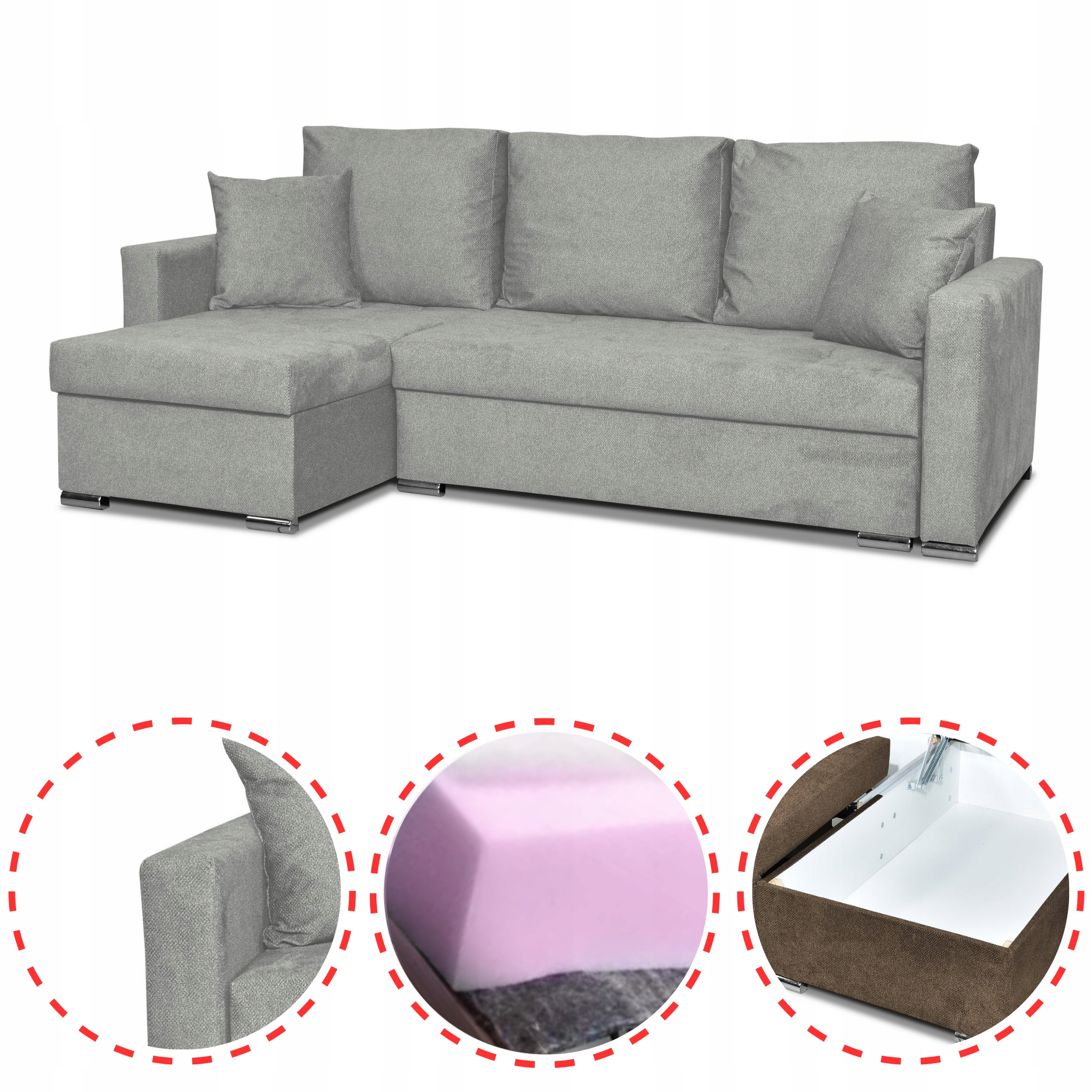 - Narożnik standardowo wyposażony w poduszki, które mieszczą się w naszych wysokich pojemnikach, nie wymagają więc dodatkowego zakupu.
