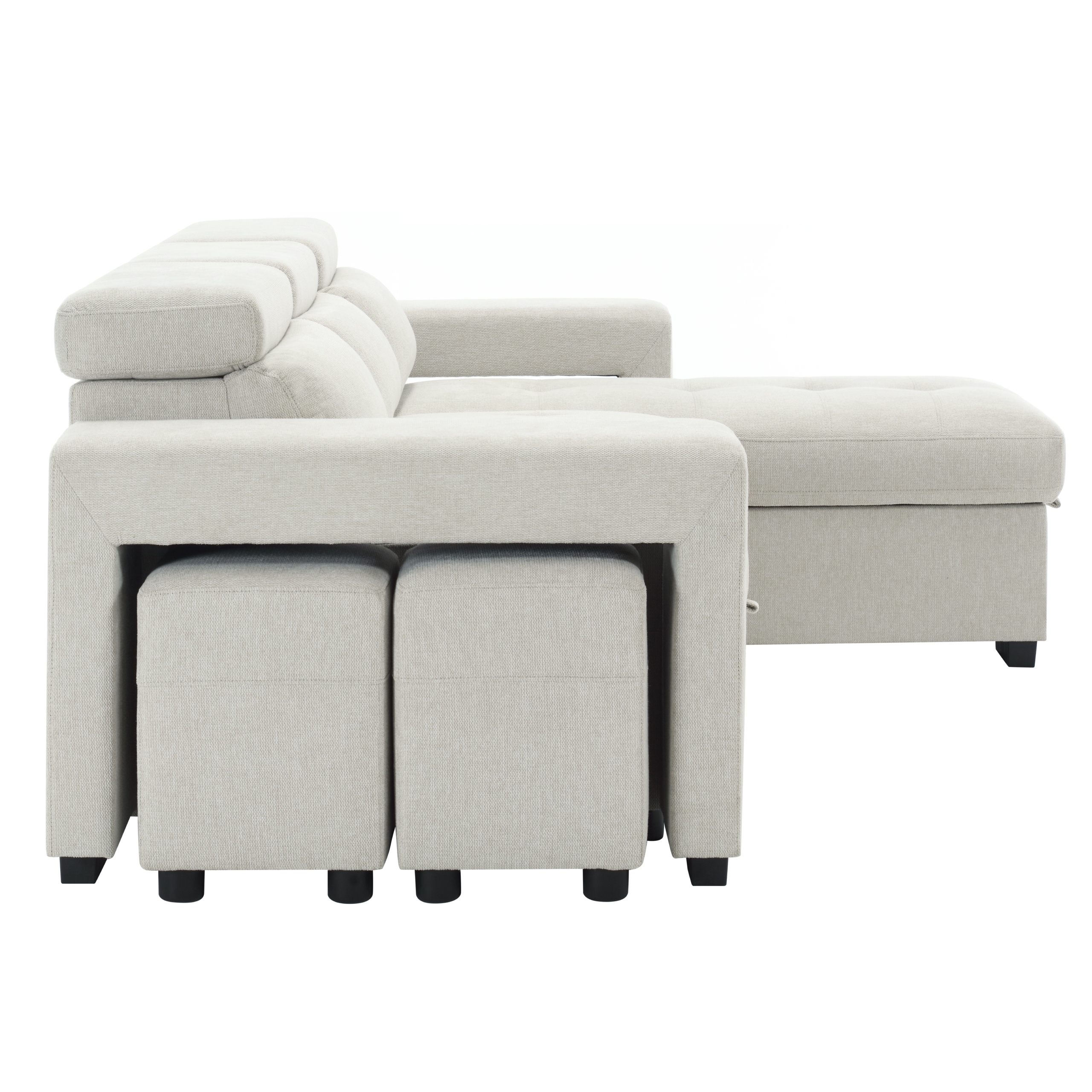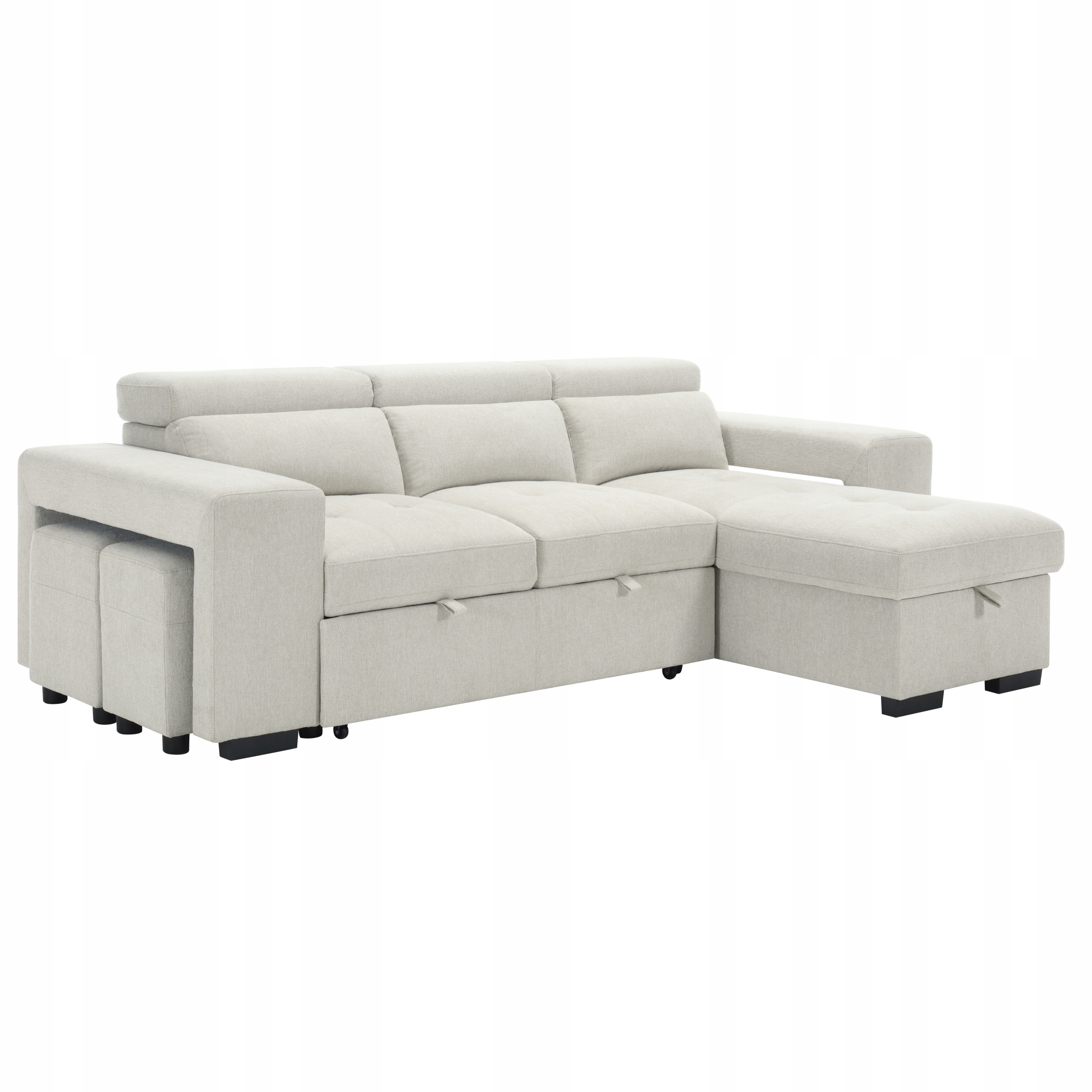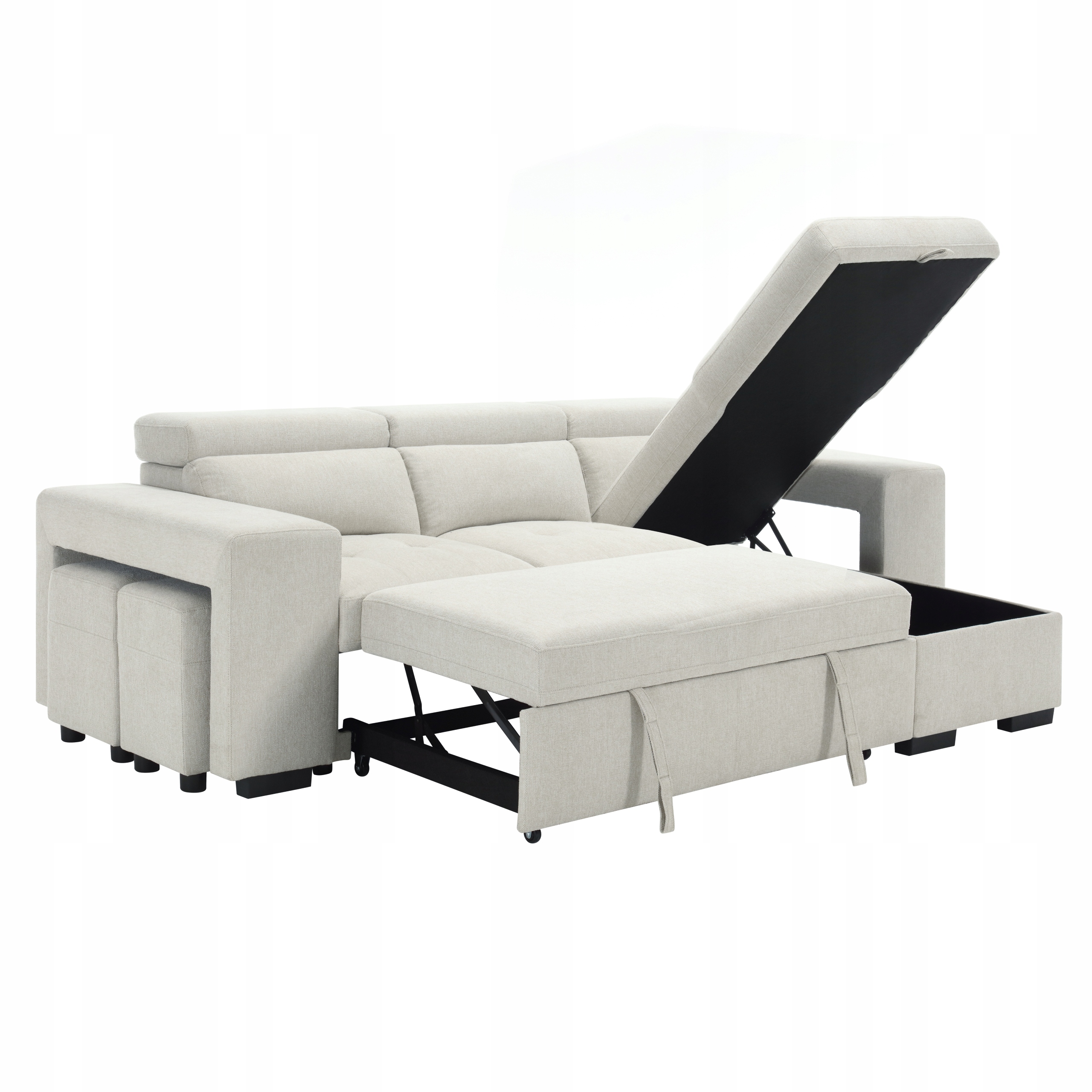 Narożnik tapicerowany BEŻOWY z funkcją spania z dwoma pufami