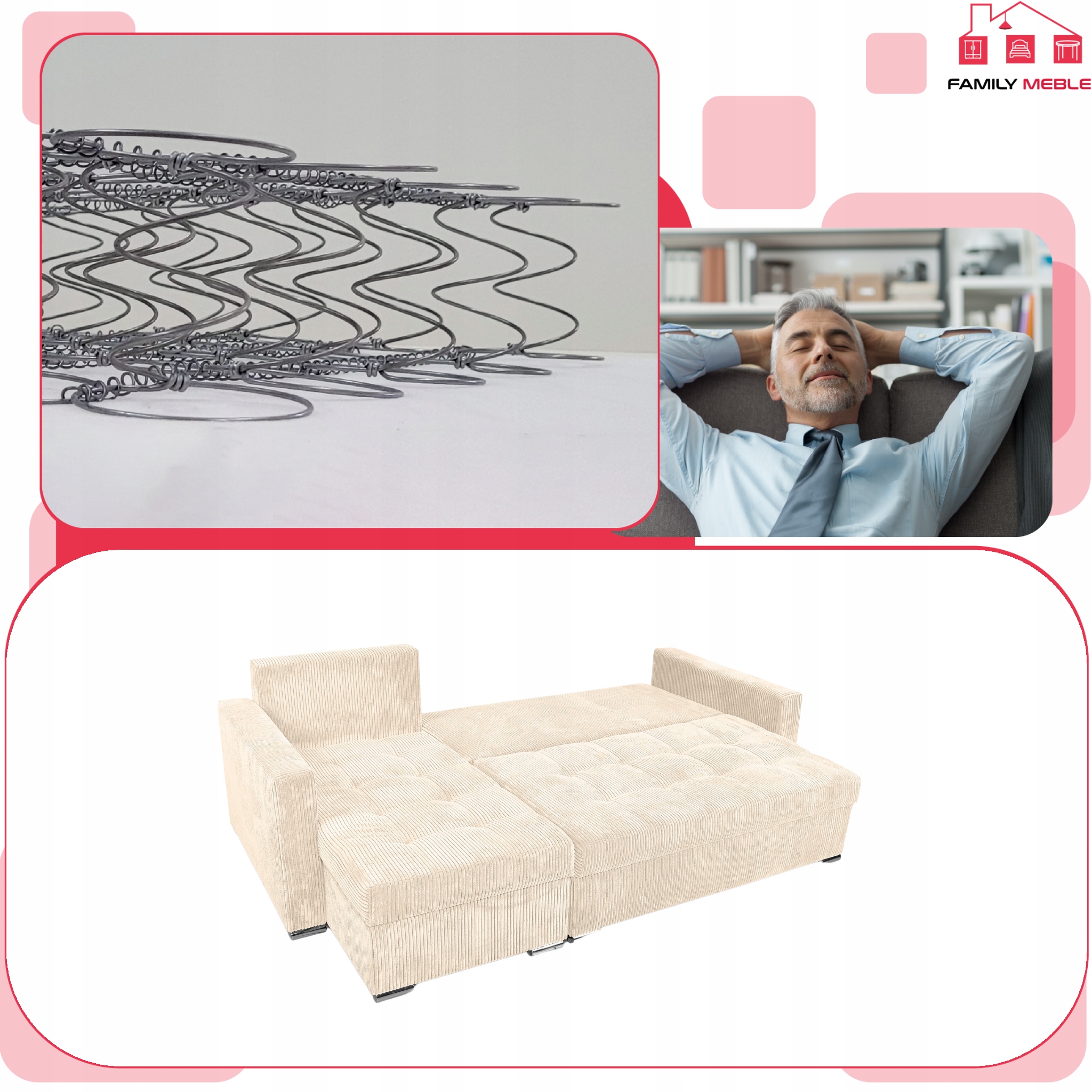 Narożnik Bonito Rozkładany z funkcją spania w kolorze beżowym to solidny mebel zaprojektowany i wyprodukowany w Polsce przez Family Meble. Proces produkcji odbywa się w naszej własnej fabryce, z polskim kapitałem i materiałami, dzięki czemu otrzymujesz wysoką jakość i trwałość. Bonito dostępny jest w 8 wariantach kolorystycznych, w tym popularny sztruks.