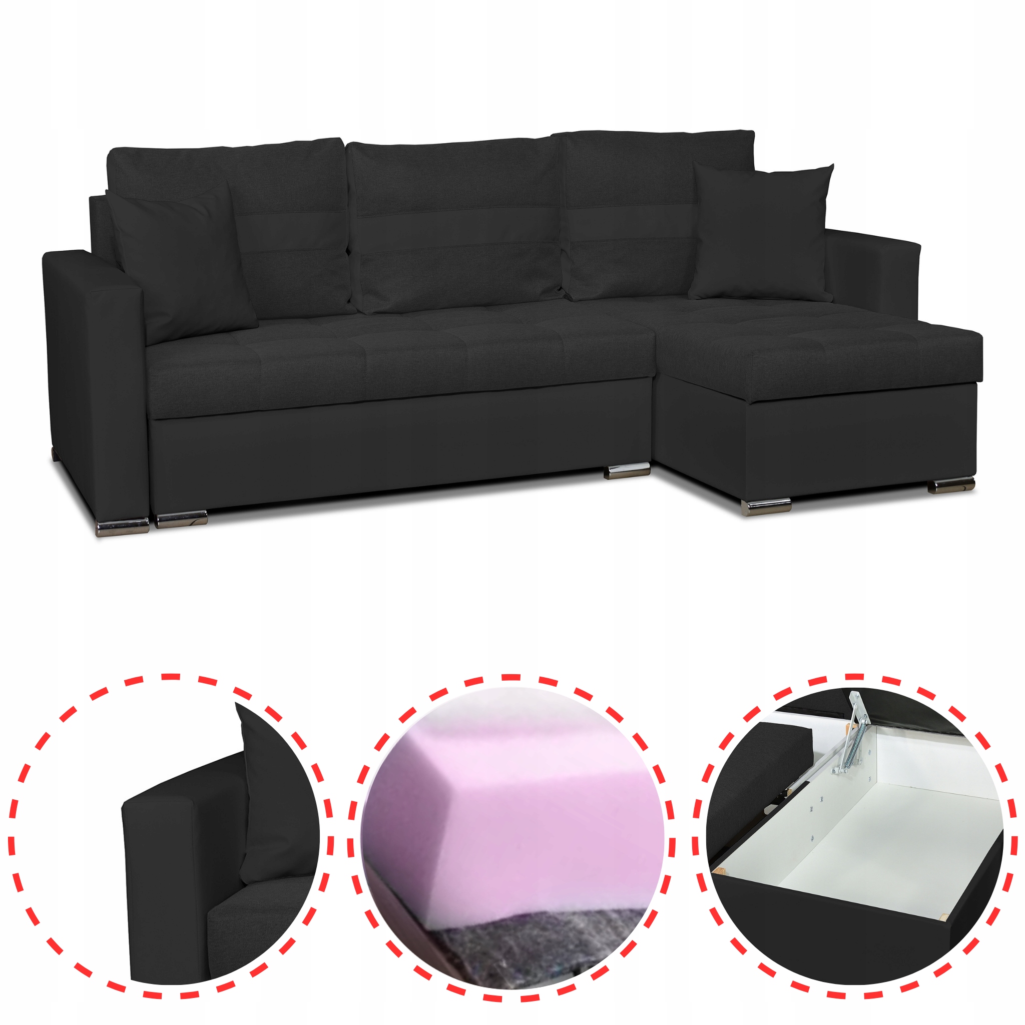 Narożnik Figo Rozkładany Z Funkcją Spania Czarny Family Meble