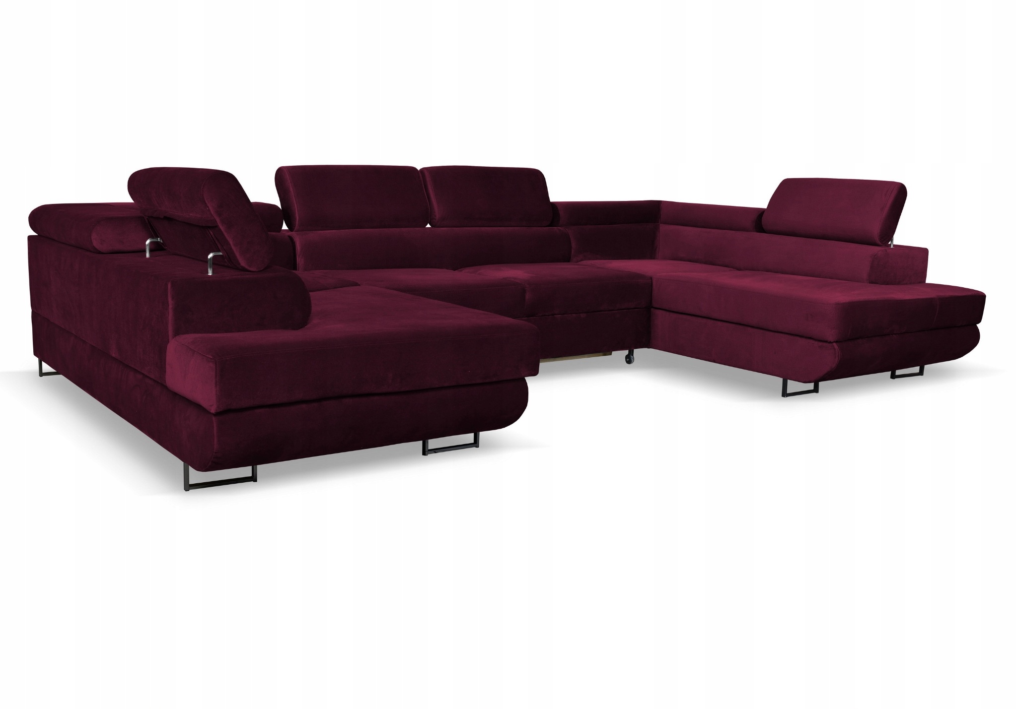 Narożnik Kształt U Rozkładany Do Spania Bordowy Welur