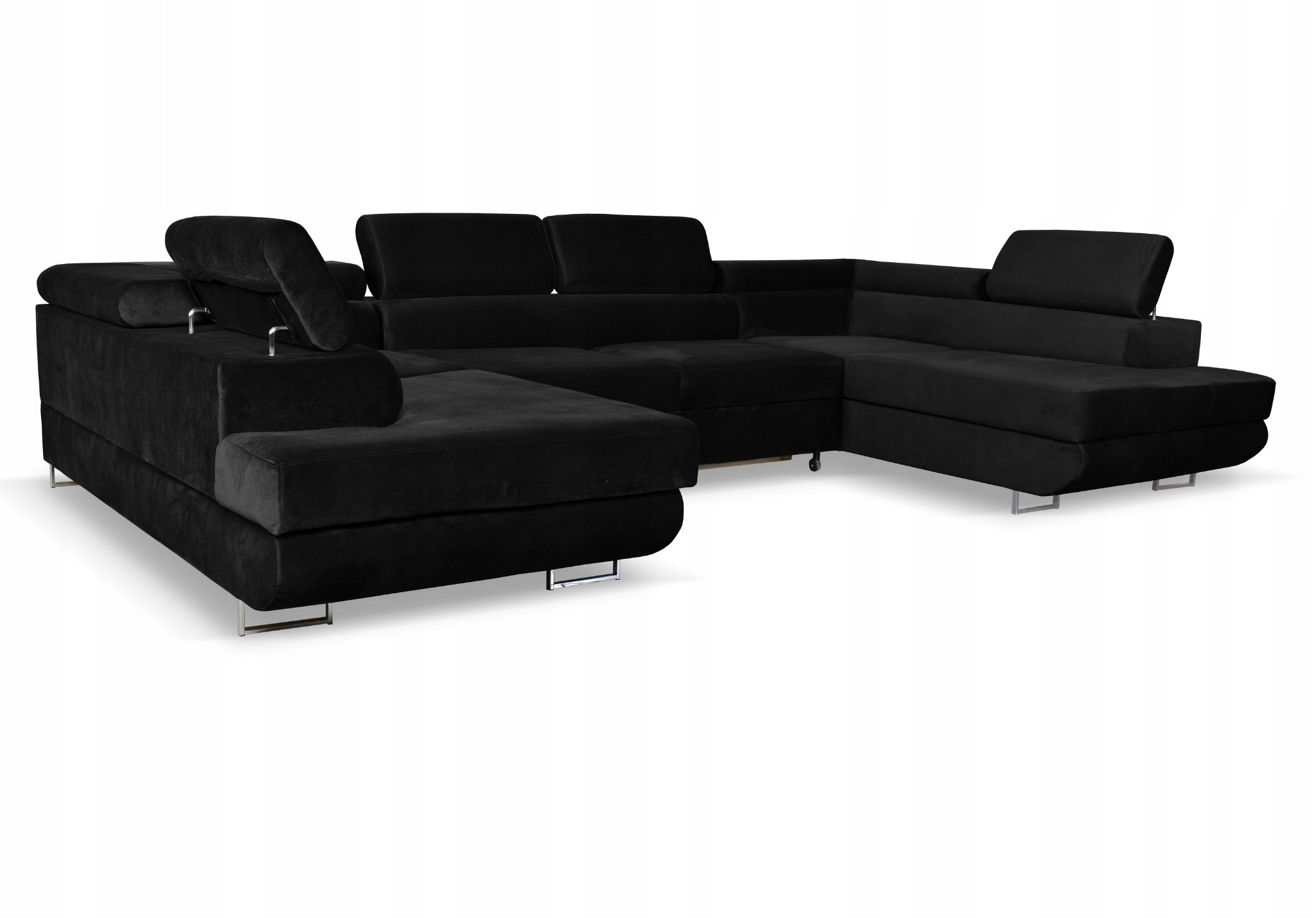 Narożnik U Rozkładany Bosso od Family Meble to komfortowy punkt centralny Twojego salonu. To polska produkcja z rodzimym kapitałem, realizowana w naszej własnej fabryce. Bosso to autorski projekt naszych projektantów, stworzony z myślą o dużych, otwartych wnętrzach. Dzięki welurowemu wykończeniu w czarnym odcieniu oferuje miękkość i elegancję, a możliwość rozkładania tworzy pełnowymiarowe miejsce do spania. Regulacja odcinka szyjnego i głowy w sześciu pozycjach oraz nowoczesny, charakterystyczny kształt litery U tworzą wygodne warunki do relaksu i spotkań.