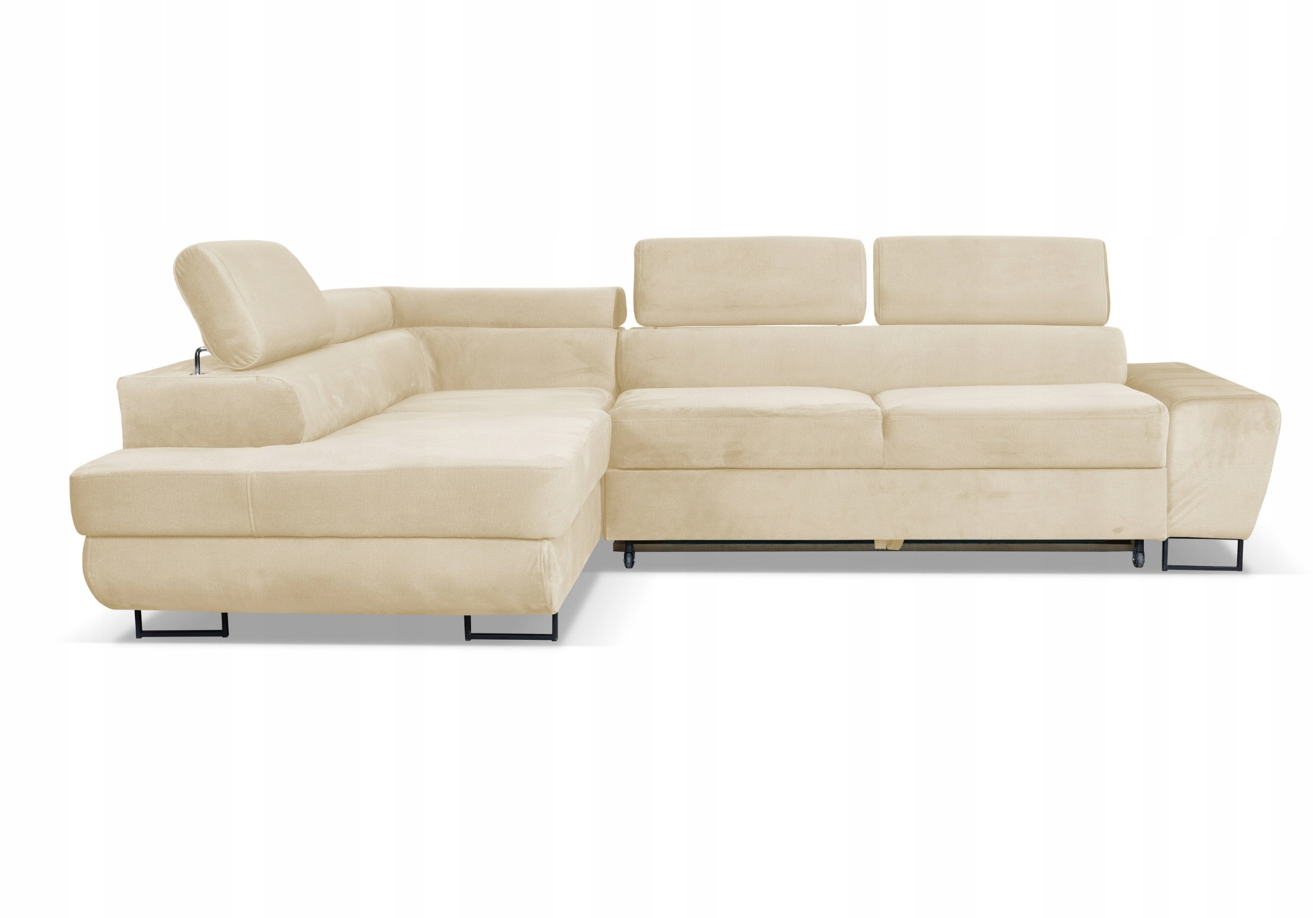 Narożnik Bosso Lewy Beżowy Welur Rozkładany Do Spania