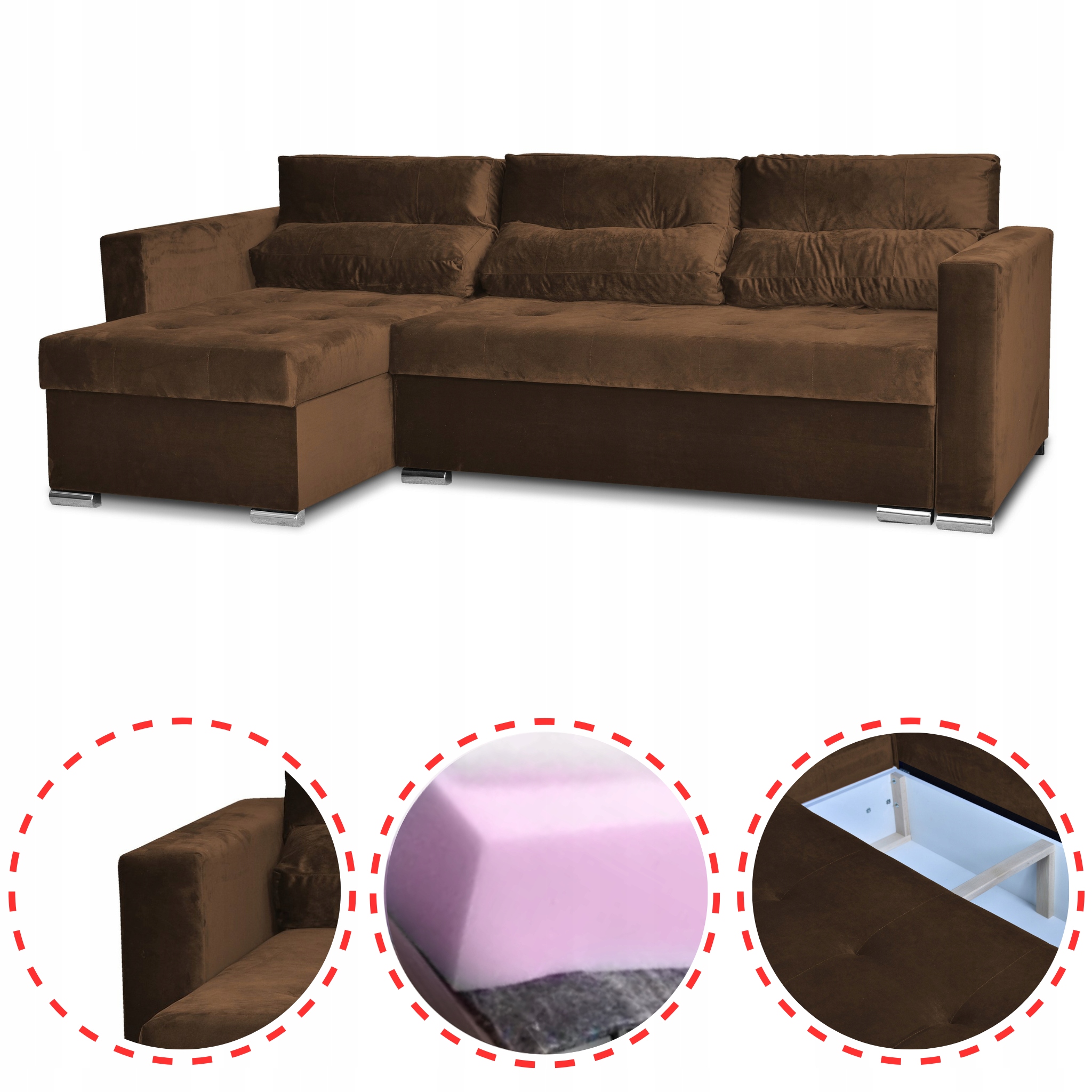 Narożnik Varius Rozkładany Z Funkcją Spania Brązowy to realizacja polskiego projektu, w całości tworzonego w naszej fabryce. To meble od Family Meble, powstające z polskich materiałów, zaprojektowane, by łączyć elegancję z praktycznością, zapewniając domowy komfort i długowieczność użytkowania.
