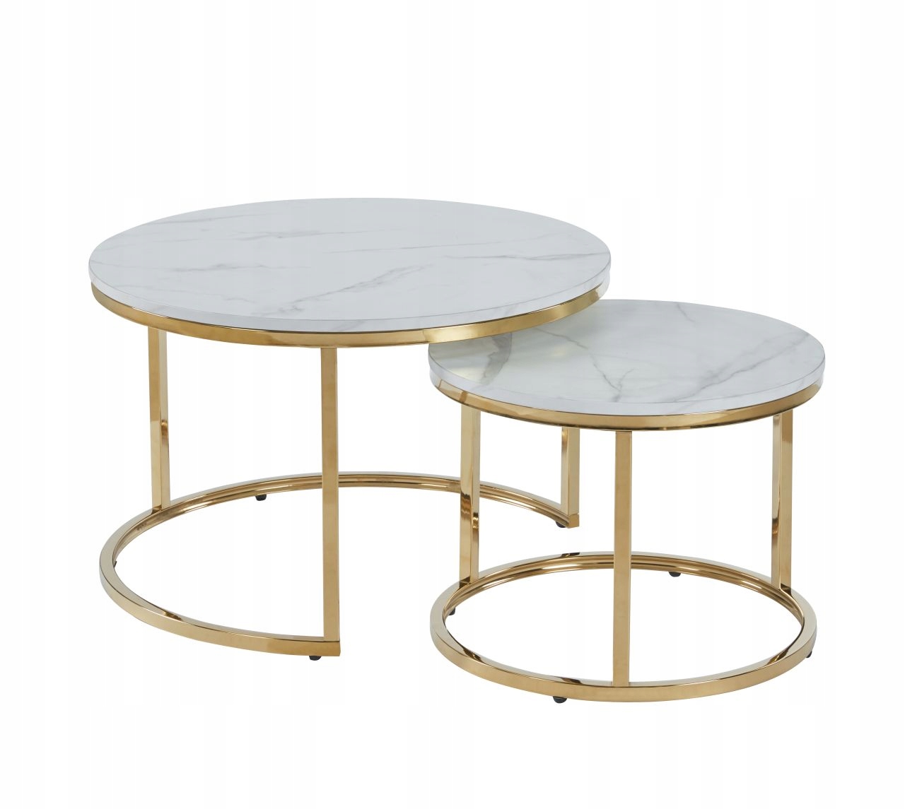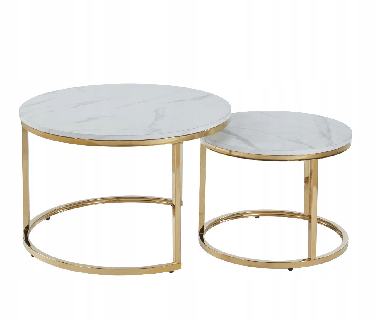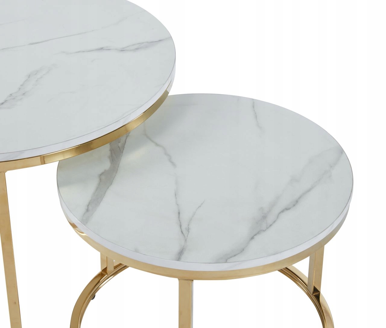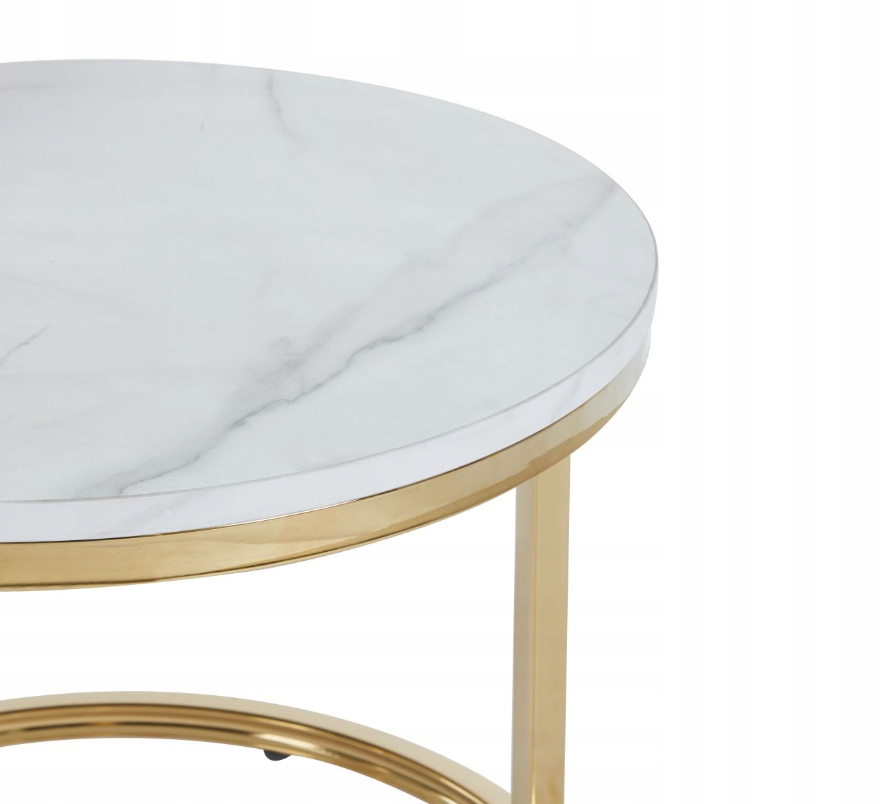 Okrągły stolik kawowy bialy marmur 70 x 70 x 45,5 Glamour POŁYSK do SALONU