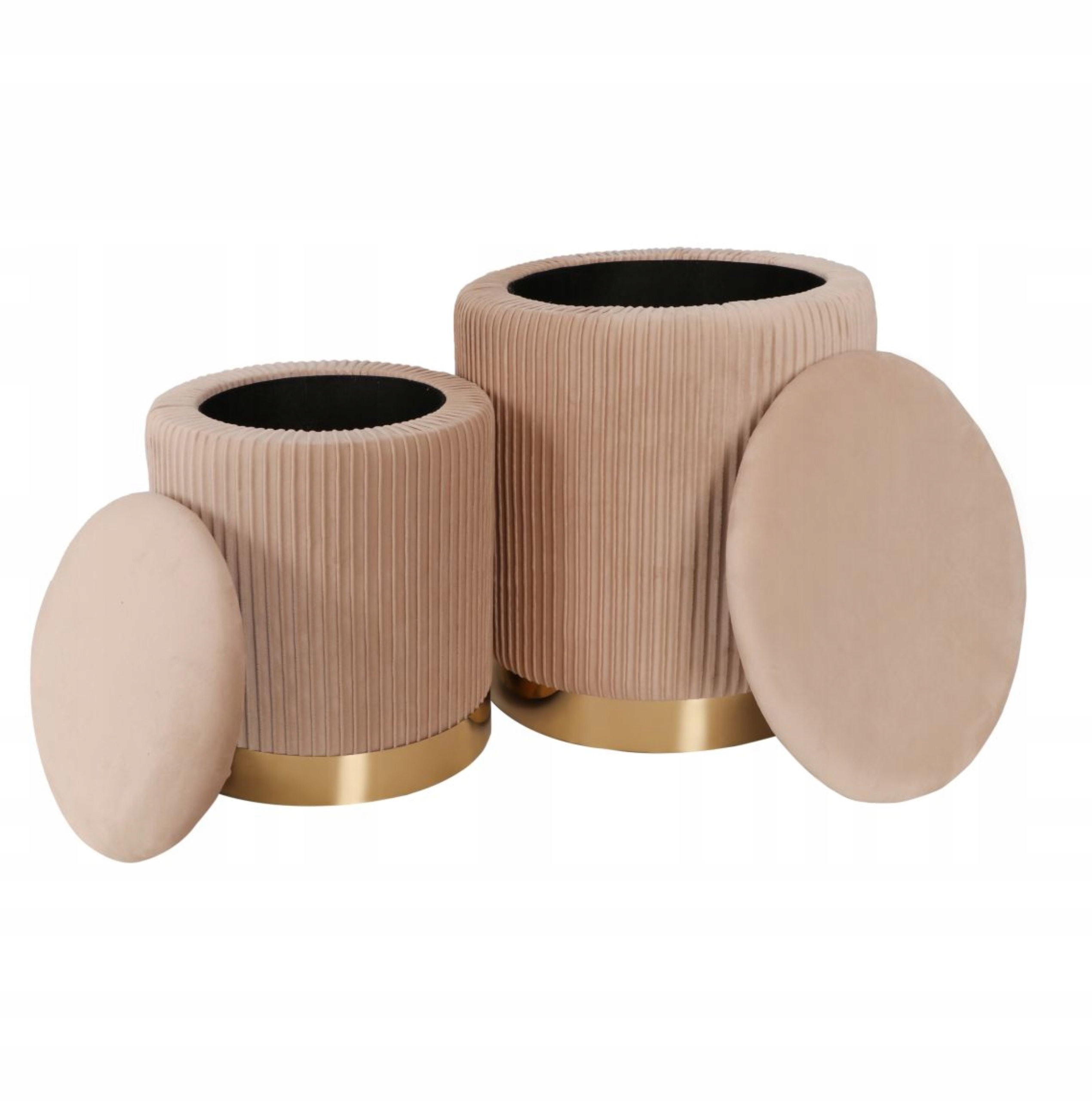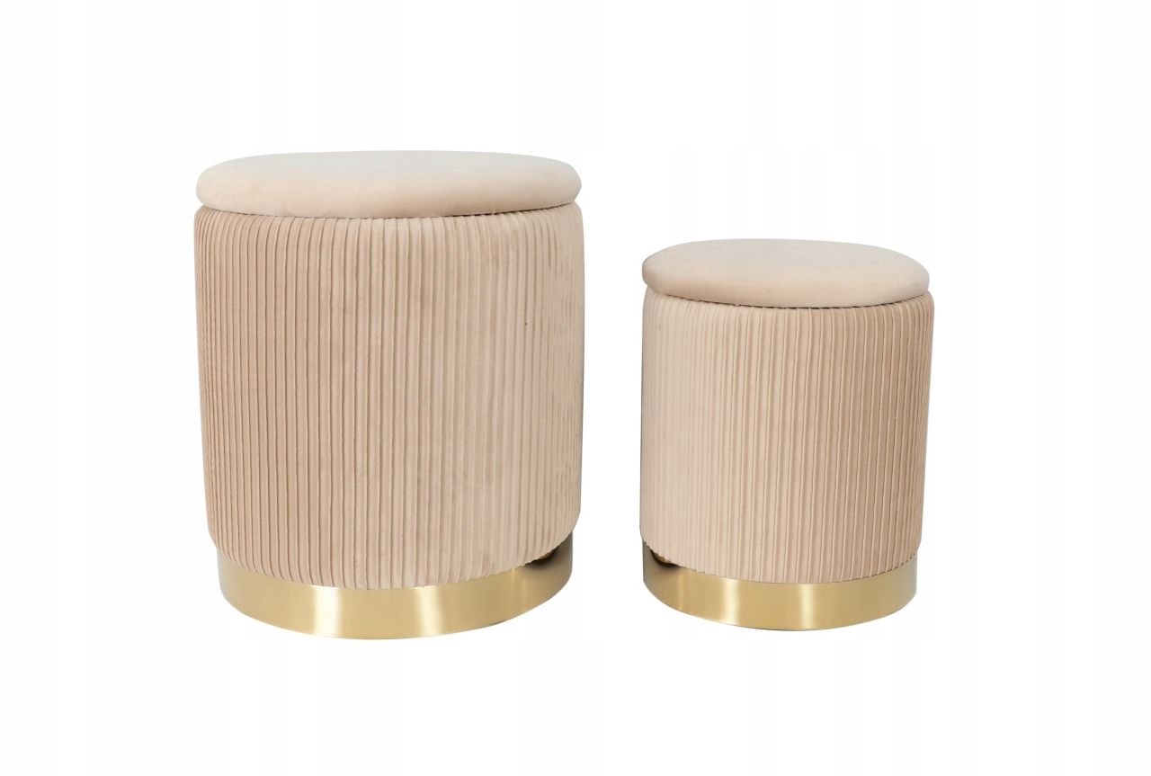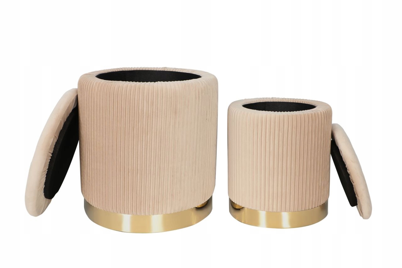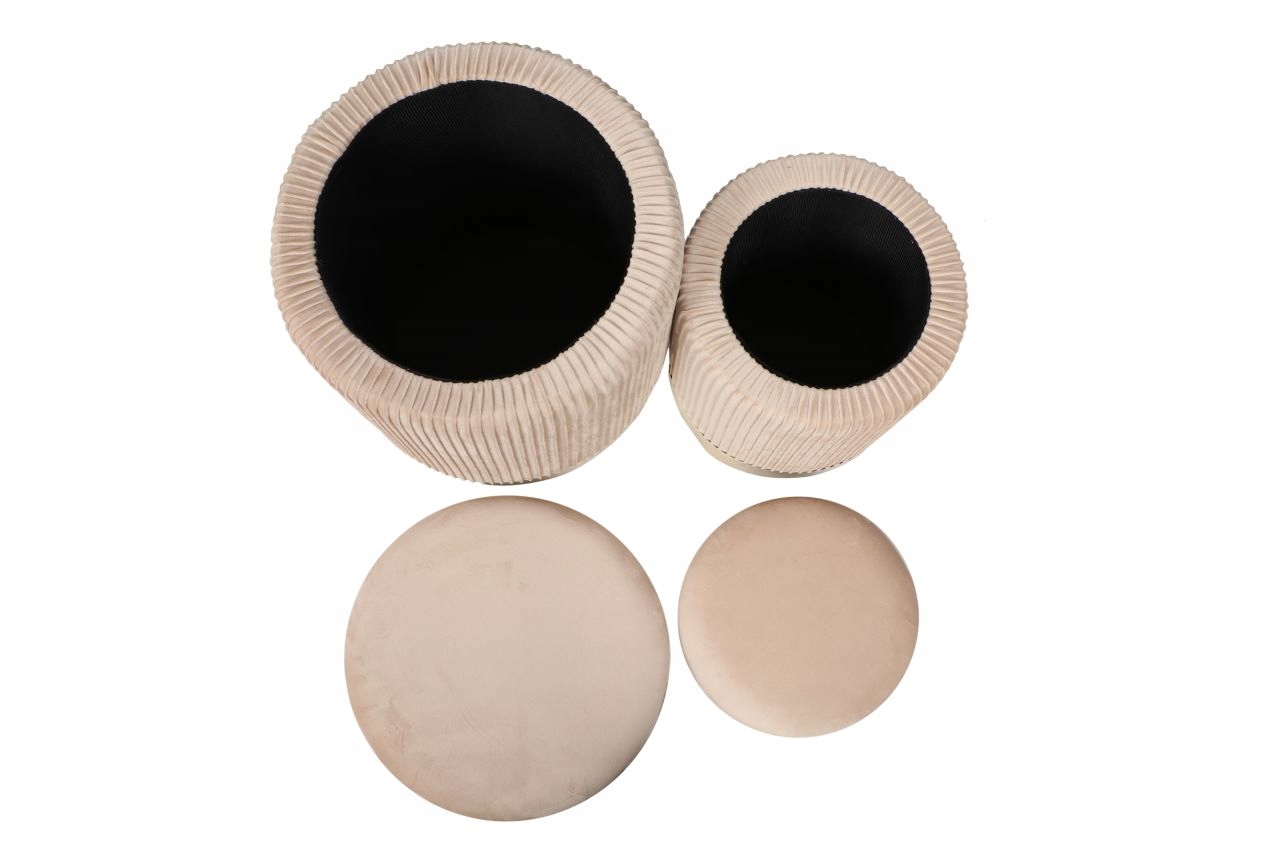 Zestaw 2 Puf ze Schowkiem 2xPufa Okrągła do Salonu Otwierana BEŻOWA Wysokie