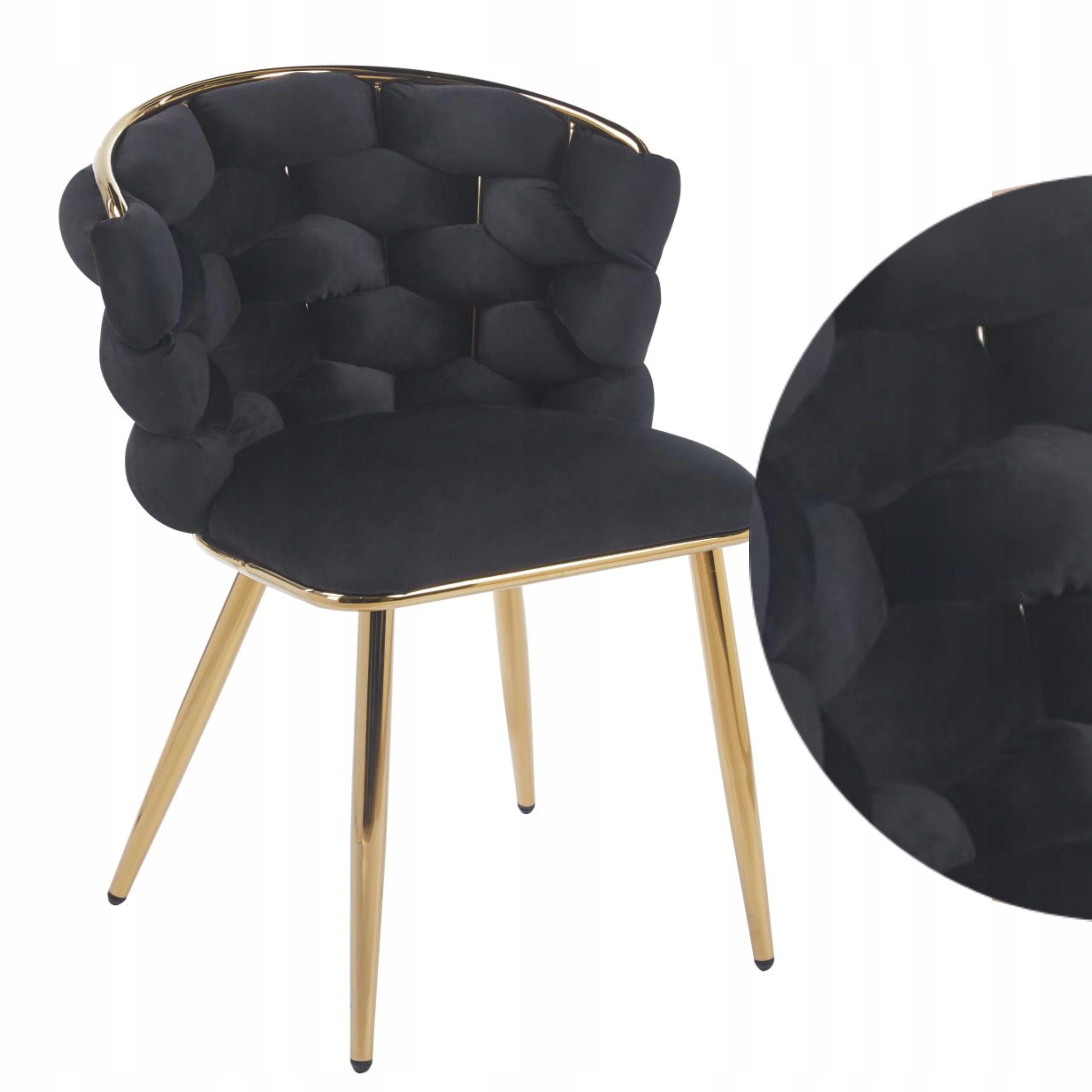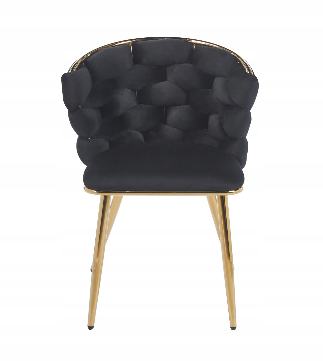 Przeplatane Krzesło Glamour na ZŁOTYM STELAŻU Welurowe Czarne Furnitex