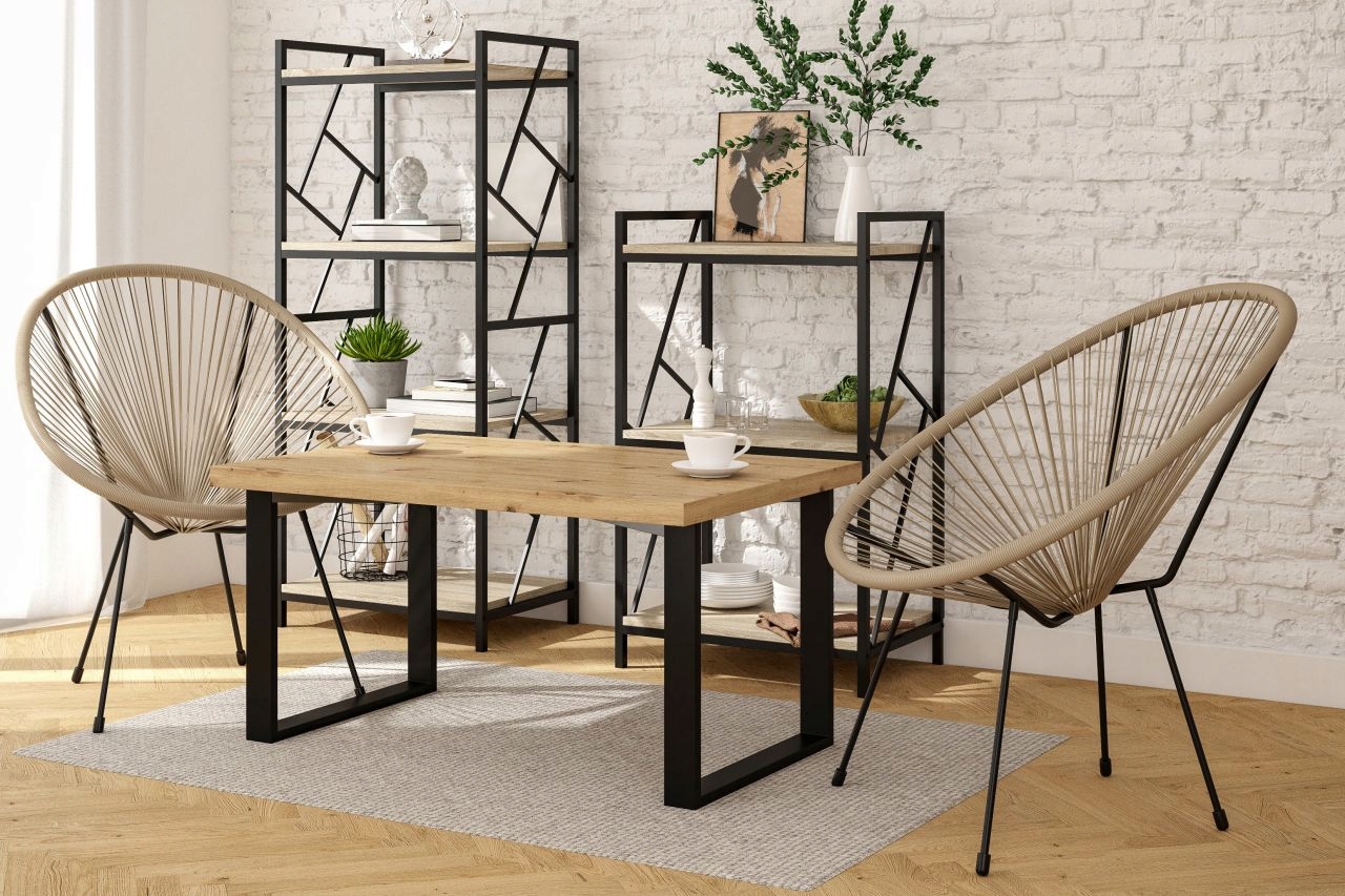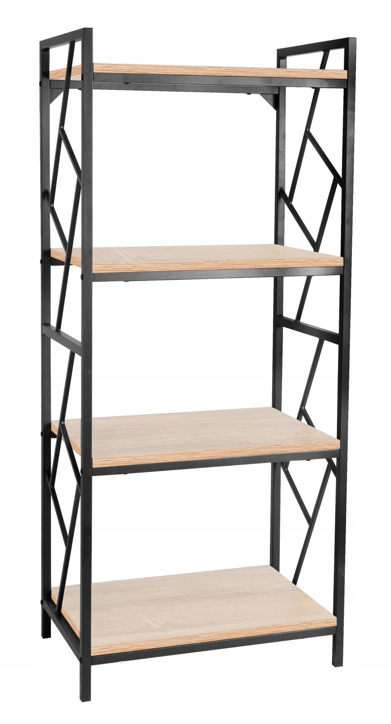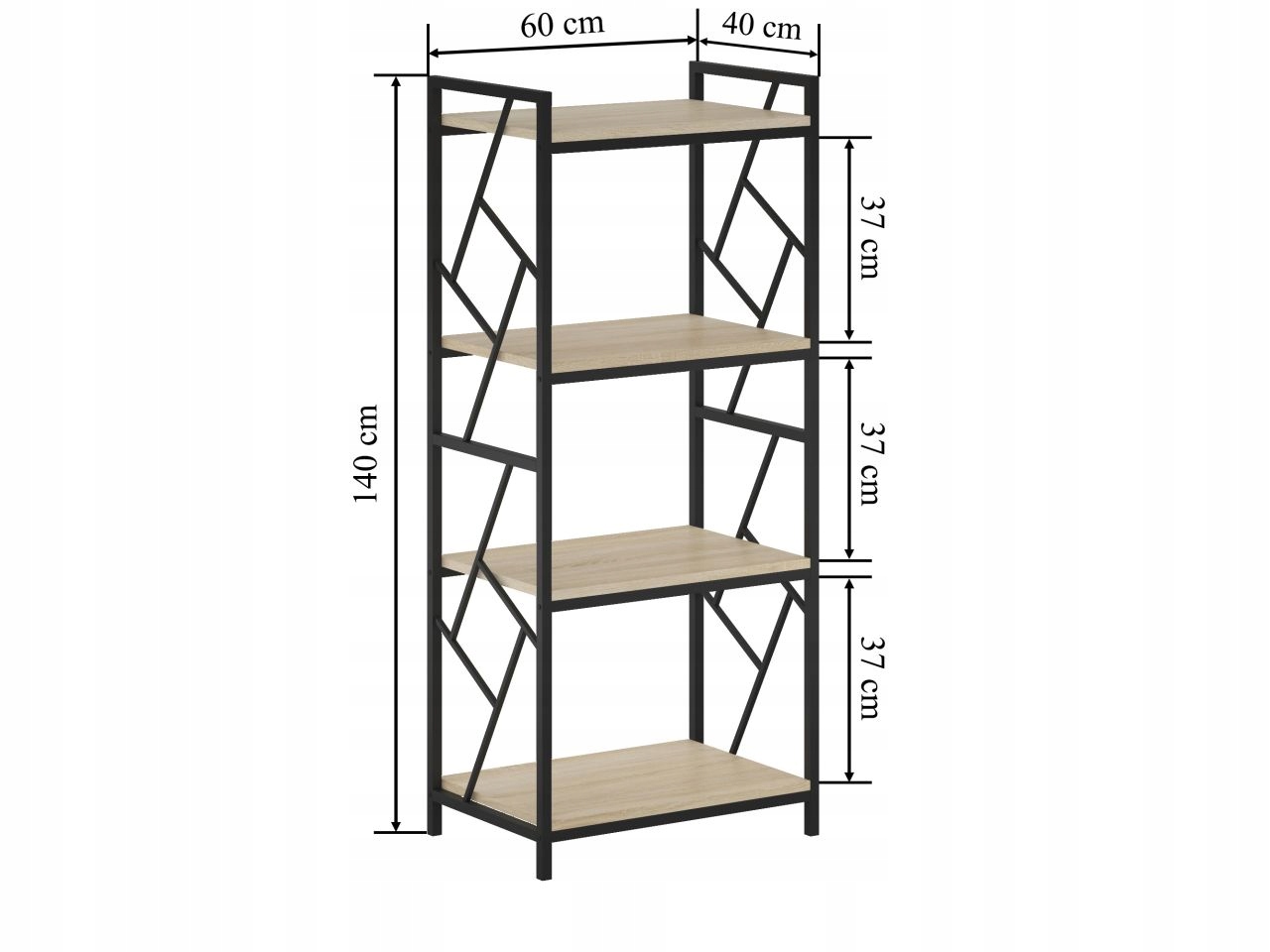 Regał MINIMALISTYCZNY Dąb SONOMA 4 Półki CZARNY Metalowy STELAŻ Furnitex