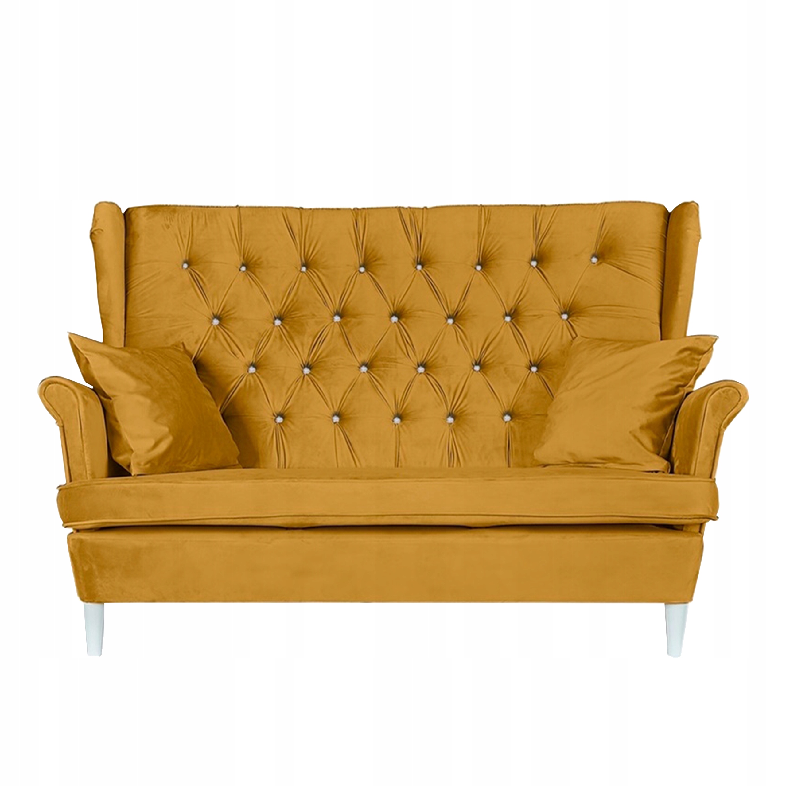Sofa Uszak Gaja Glamour w kolorze żółtym to dwumiejscowy must‑have od Family Meble. Charakteryzuje ją klasyczny kształt z charakterystycznymi „uszami” przy bokach oparcia, które dodają meblowi elegancji i wyjątkowego charakteru. Miękki, miodowy odcień obicia wprowadza do wnętrza przytulność, a sama sofa zachwyca wygodą i trwałością wykonania.