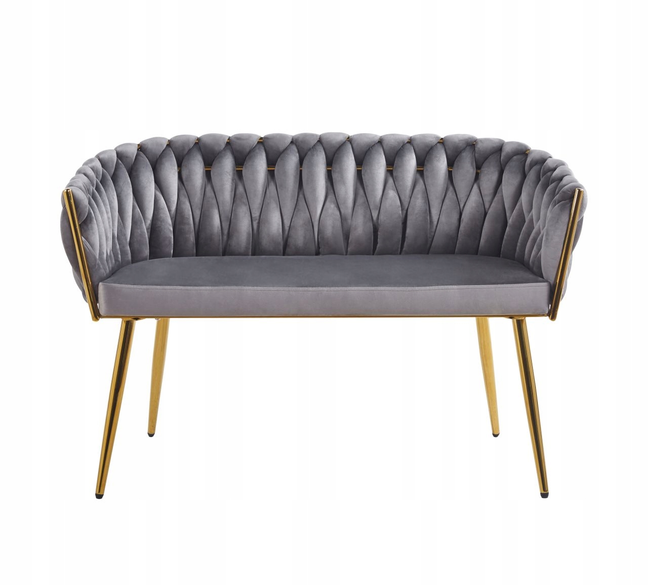 Sofa SF2-FX Szara Welurowa 2-osobowa Na Złotym Stelażu