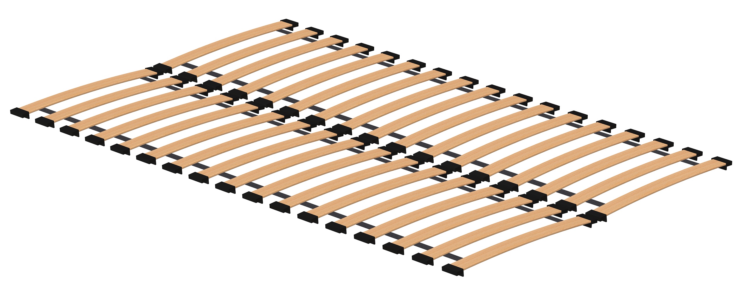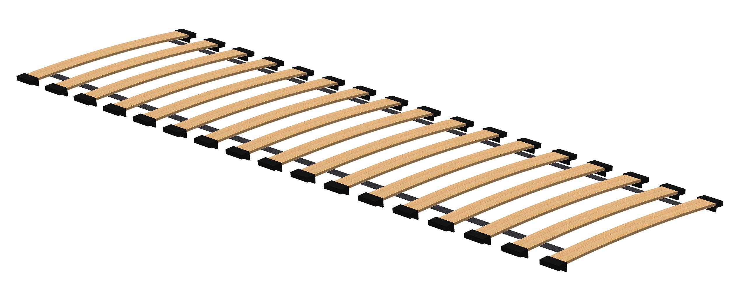 - Wykonany z klejonych warstwowo listew bukowych, wyprofilowanych w lekki łuk dla większego komfortu i sprężystości materaca.