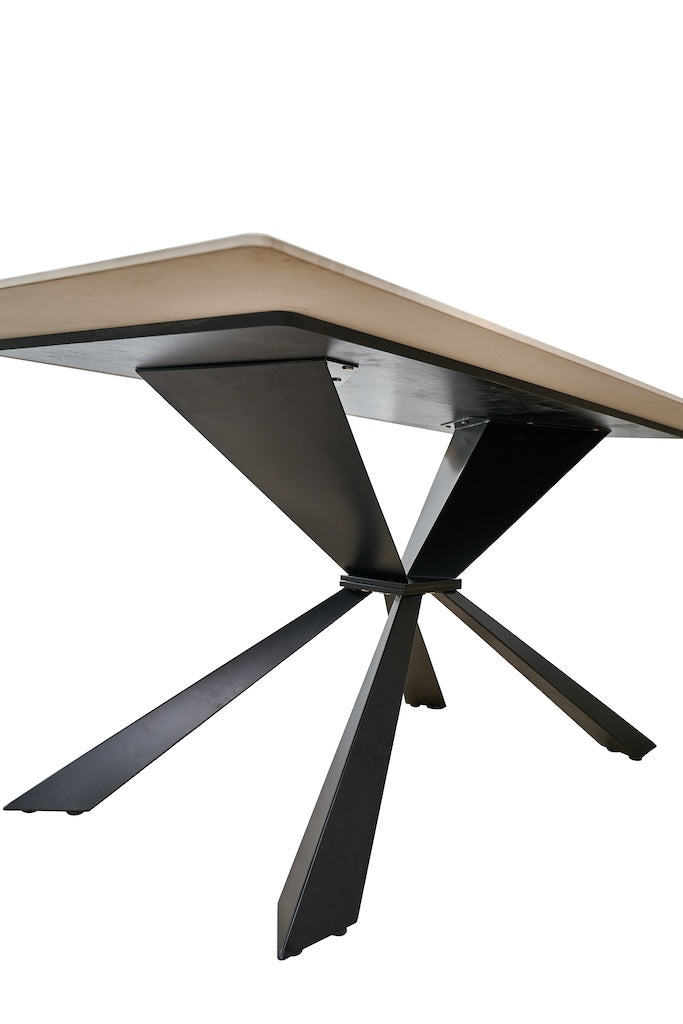 Największym atutem stołu Fornis jest jego spektakularny blat w odcieniu złamanej bieli / mlecznej bieli, który przywodzi na myśl luksusowy marmur w stylu Calacatta. Jasne, eleganckie tło zostało wzbogacone o wyraźne, nieregularne użylenia w odcieniach szarości i grafitu, przełamane subtelnymi, delikatnymi akcentami złoto-beżowymi.