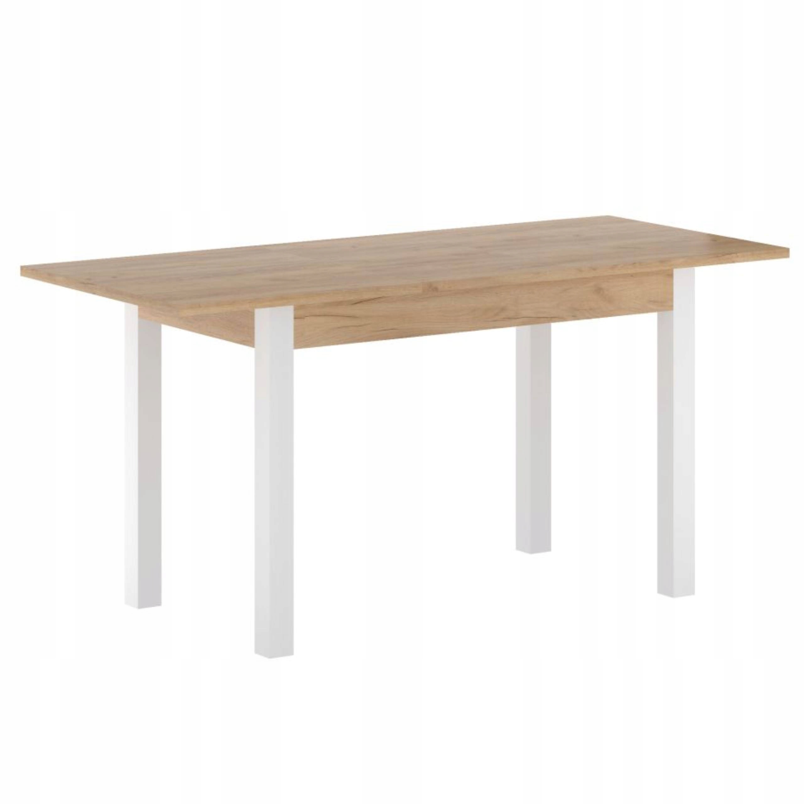 Stół rozkładany ST22 FX w tonacji Dąb Złoty Craft z nogami w kolorze białym to połączenie minimalistycznego designu z praktycznością od Furnitex. Ten prostokątny mebel jest przemyślany pod kątem komfortu i funkcjonalności, idealny do jadalni, kuchni lub salonu.